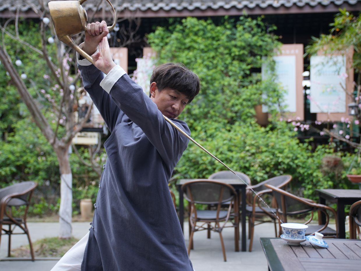 成都铜壶茶艺非遗传承人曾小龙表演茶艺