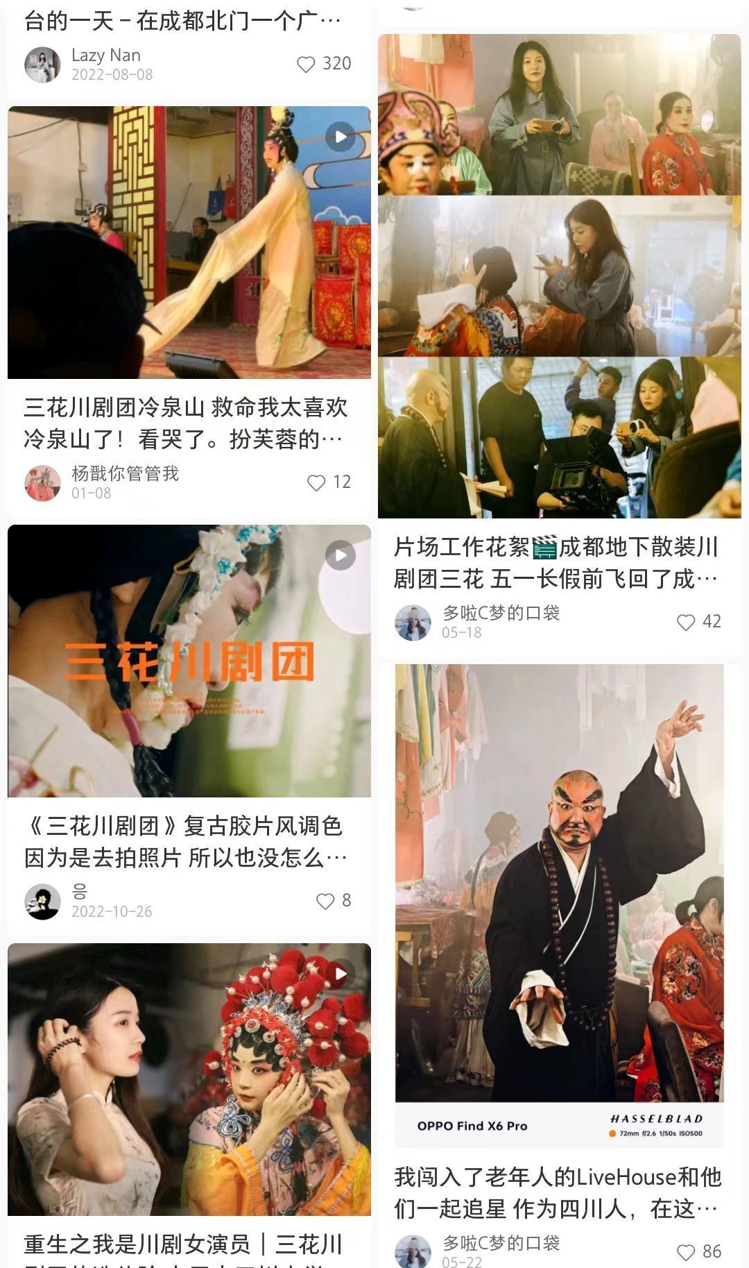 年轻人也喜欢泡茶馆,感受“偷得浮生半日闲”的惬意,体验平时生活并不多见的戏曲文化。最近在互联网走红的成都百花川剧团、三花川剧团、梅花剧社等小众剧团,孕育在社区的茶文化中,其中不少剧团还要提供川剧化妆、换装服务等。在小红书、大众点评网,有不少年轻网友分享自己的视频、照片和体验心得:“今天我同事体验了青衣的妆发,我扮了武生和她搭档,后台还是开放的,戏曲包头非常繁琐,还有点闷气,好敬佩台上的演员。”“无限续杯的茶和常年无休的戏,建议大家提前20分钟到场”……引来众多围观和点赞。