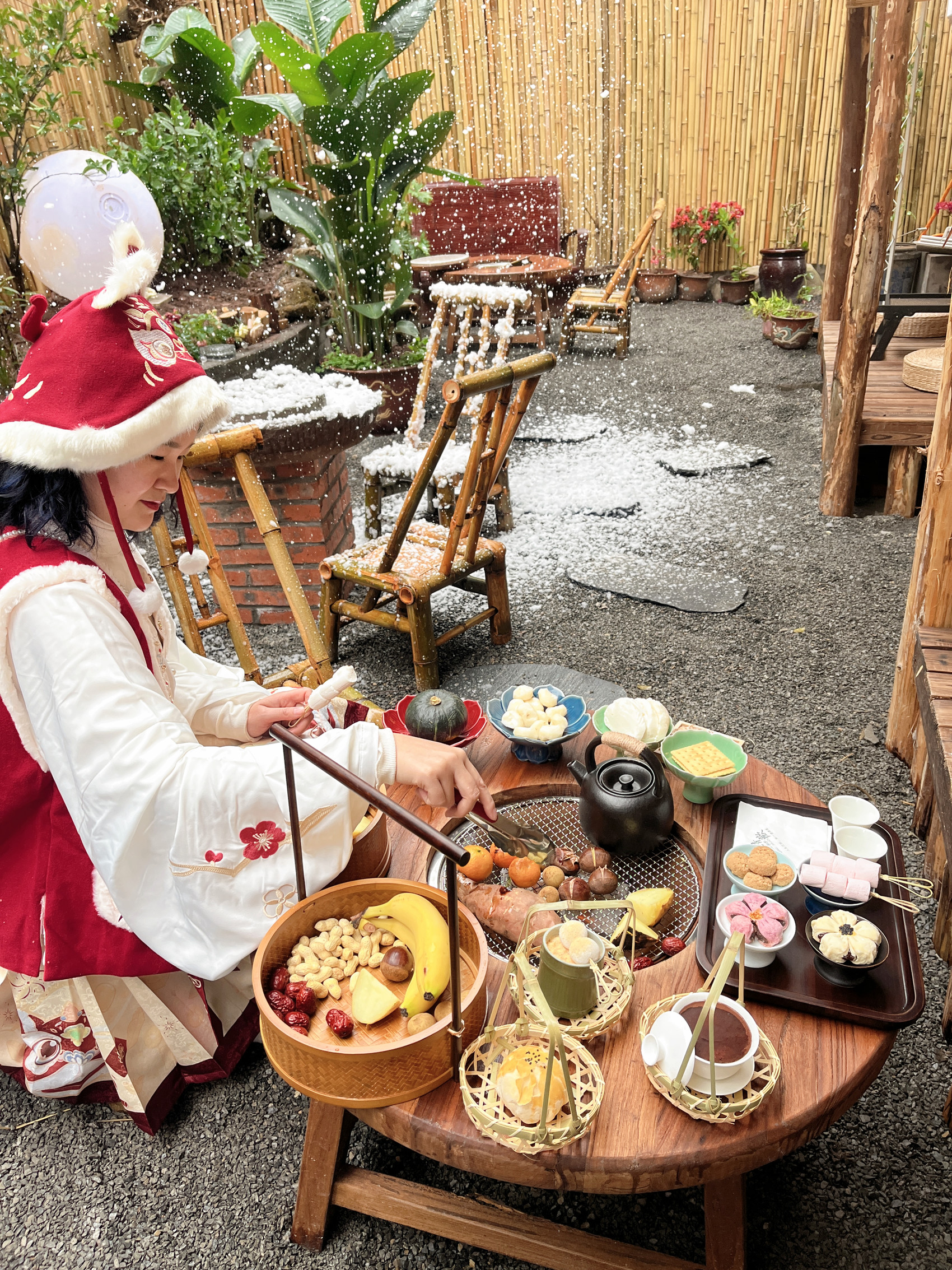 “绿蚁新醅酒,红泥小火炉。晚来天欲雪,能饮一杯无?”这首出自白居易《问刘十九》的诗句,如今正成为茶文化焕发新生的缩影。2022年秋冬,不少商家配上泥炉炭火,烹煮一壶好茶,再将干果、水果等围炉烘烤,秋冬专属定制的“围炉煮茶”成为新潮流。如今,这一茶文化潮流在夏天又摇身变为“围炉冰茶”。红红的火炭换成了干冰,烟雾缭绕中,高颜值的茶文化继续让不少人打卡,“围炉煮茶”、“围炉冰茶”、汉服茶馆等成为当代人的社交新宠。
