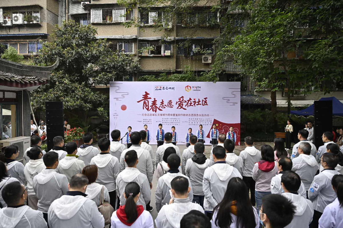 10月25日上午,在成都市武侯区院子文化创意园,举行了“青春志愿·爱在社区——纪念志愿军抗美援朝70周年暨重阳节助老志愿服务示范活动”。
