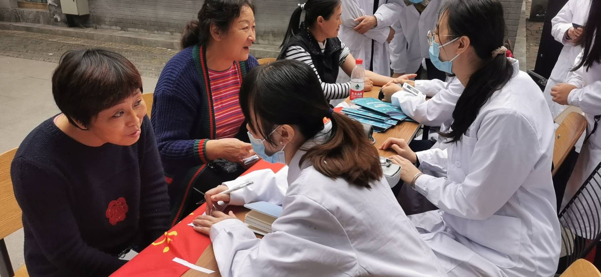 随后,参与活动的志愿者在花艺志愿者的带领下制作鲜花,并化身“熊猫侠”,带着花束、祝福卡、健康生活小资料等走向周边社区,上门看望慰问抗美援朝老战士和孤寡老人。来自成都中医药大学附属医院的博士志愿者们也细心为抗美援朝老战士和社区老人们进行身体检查,并耐心向他们讲解日常保健小知识。