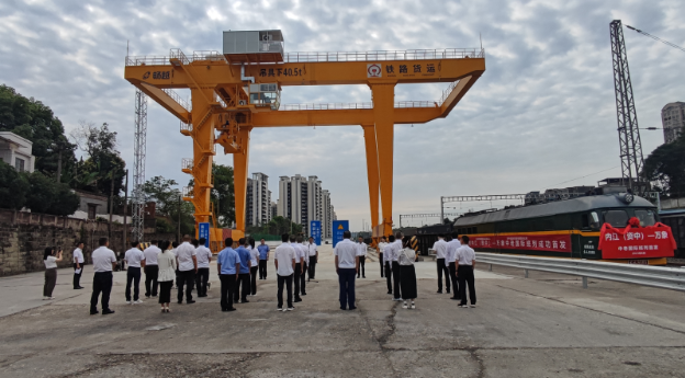 6月5日上午,内江首趟中老班列从资中火车站发车,将从云南磨憨口岸出境,运输至目的地老挝首都万象。