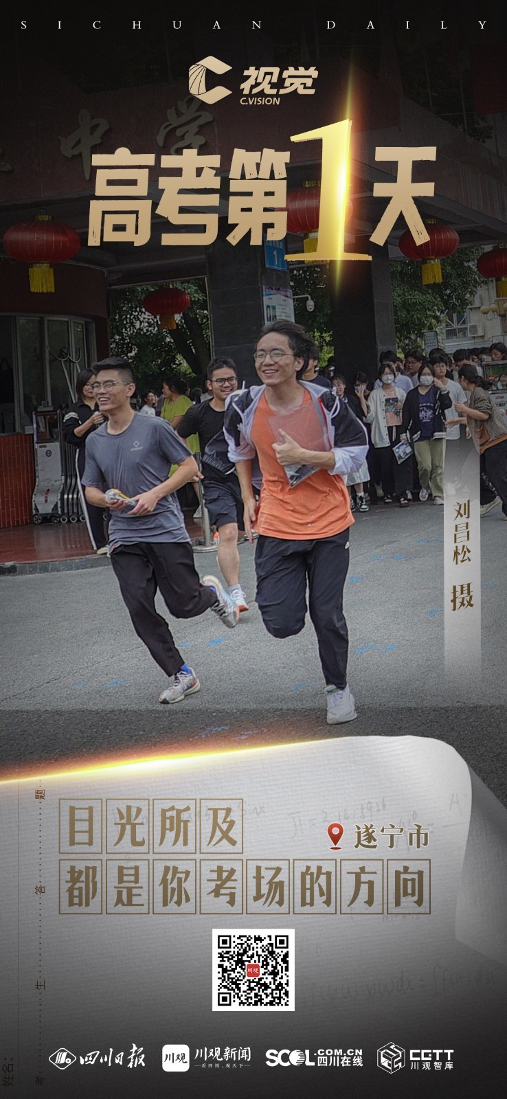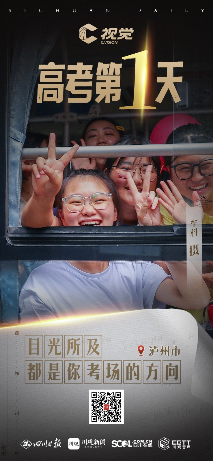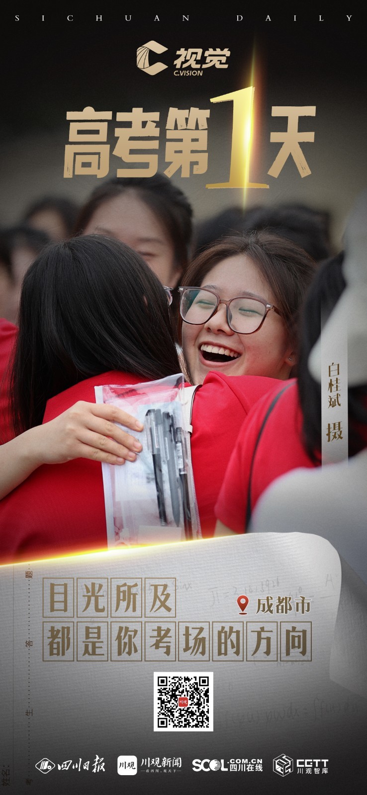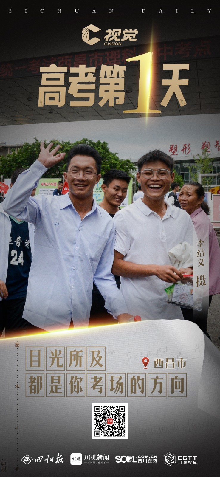 6月7日,四川60.77万考生参加2023年普通高等学校招生全国统一考试。高考第一天,考生们沉着应考,目光所及都是你考场的方向,祝福你们考出好成绩。