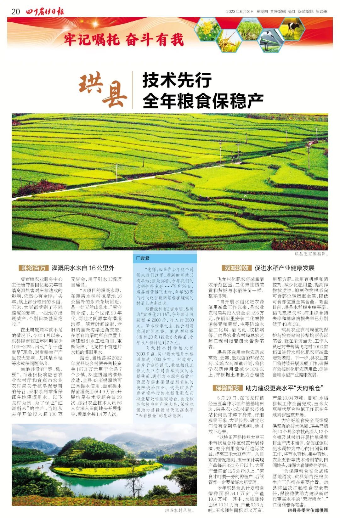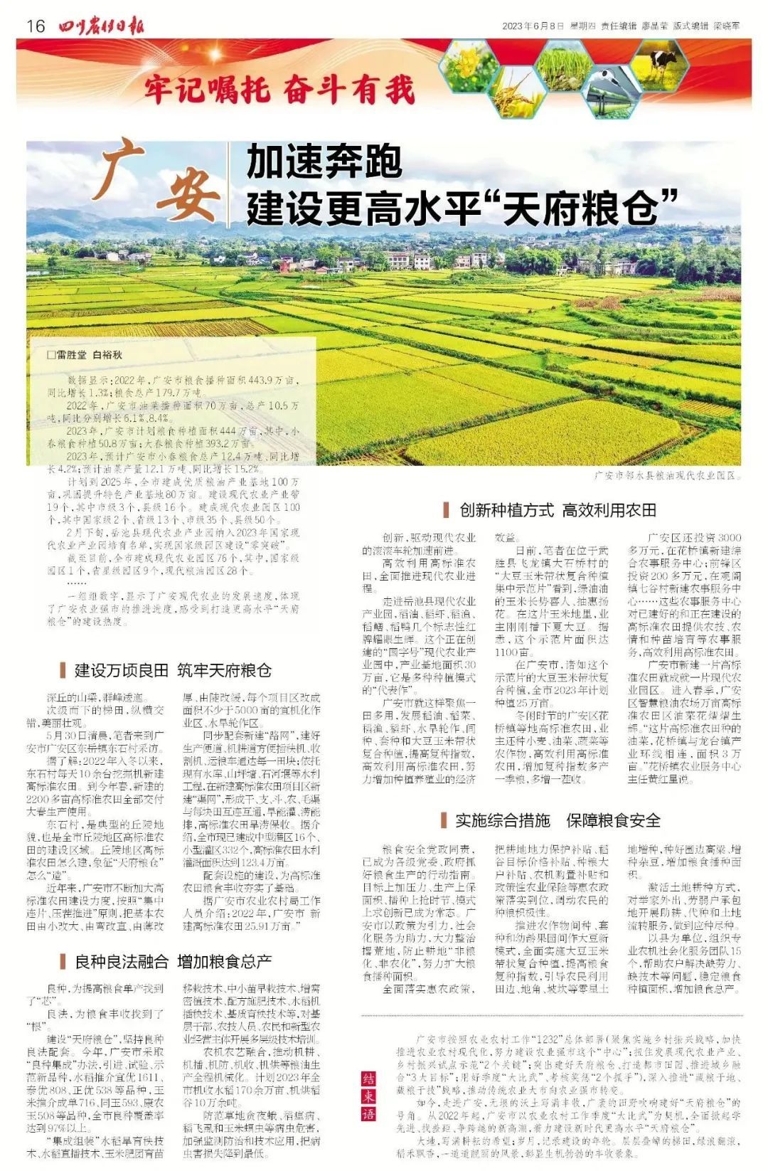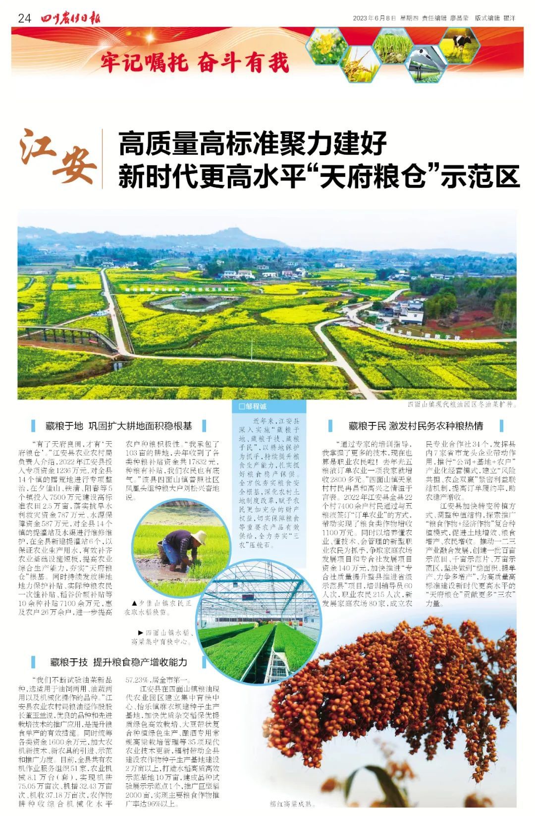 去年6月8日,习近平总书记来川视察,首站前往眉山市东坡区太和镇永丰村,强调要把粮食生产抓紧抓牢,在新时代打造更高水平“天府粮仓”。