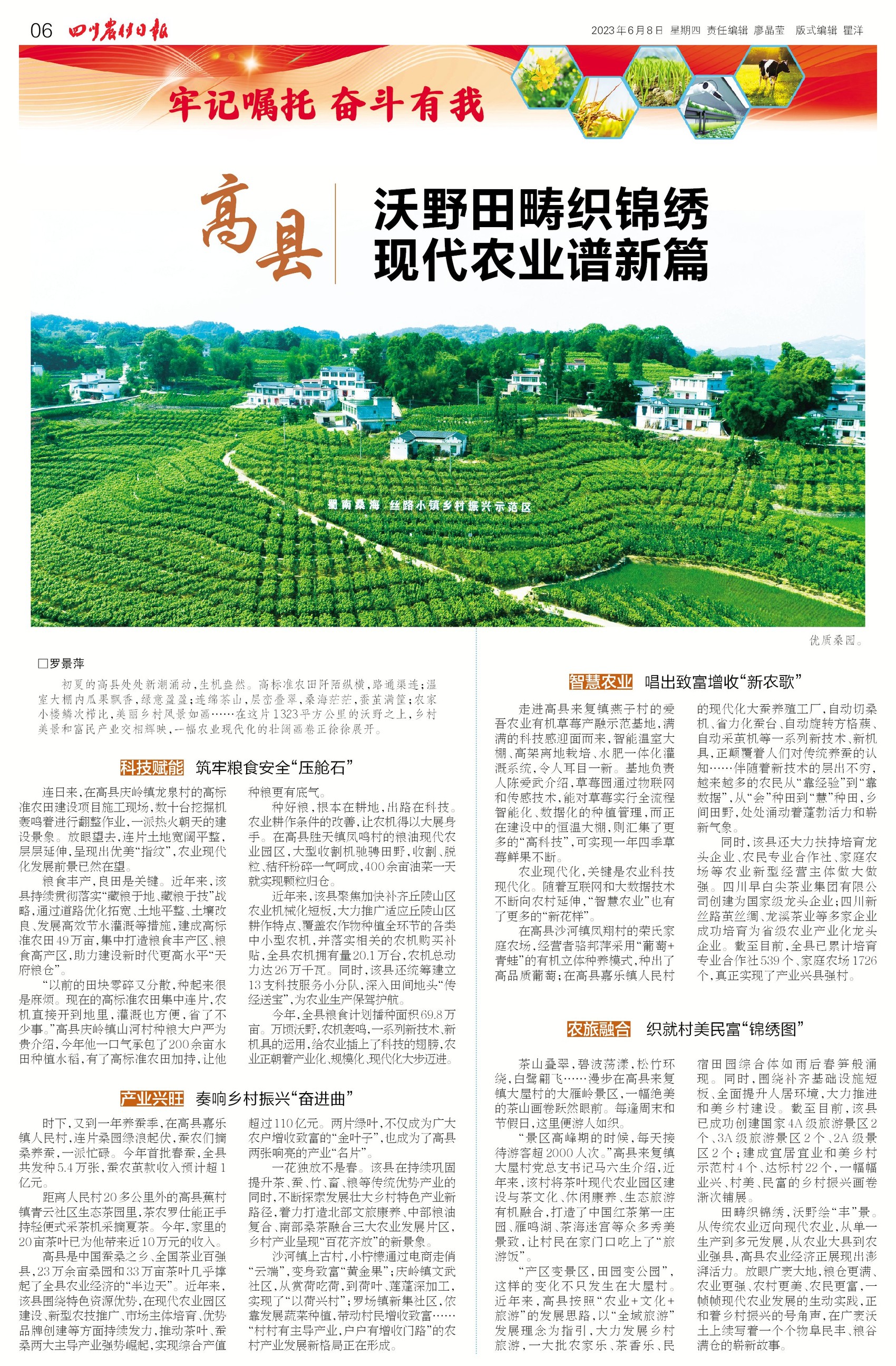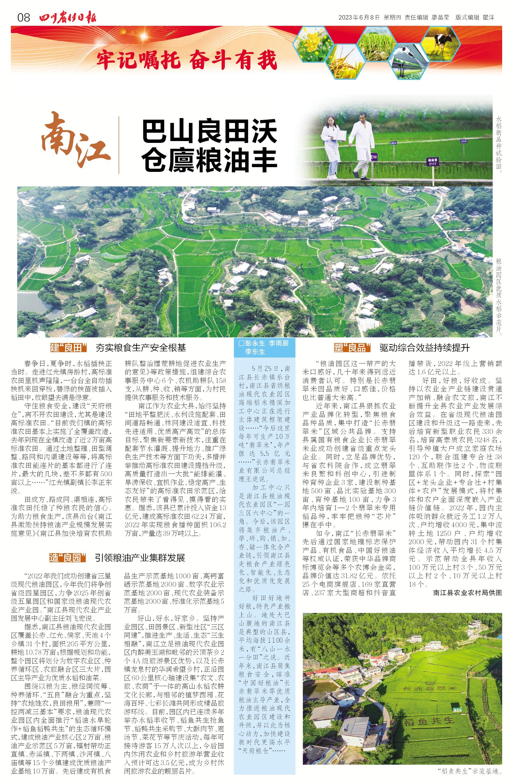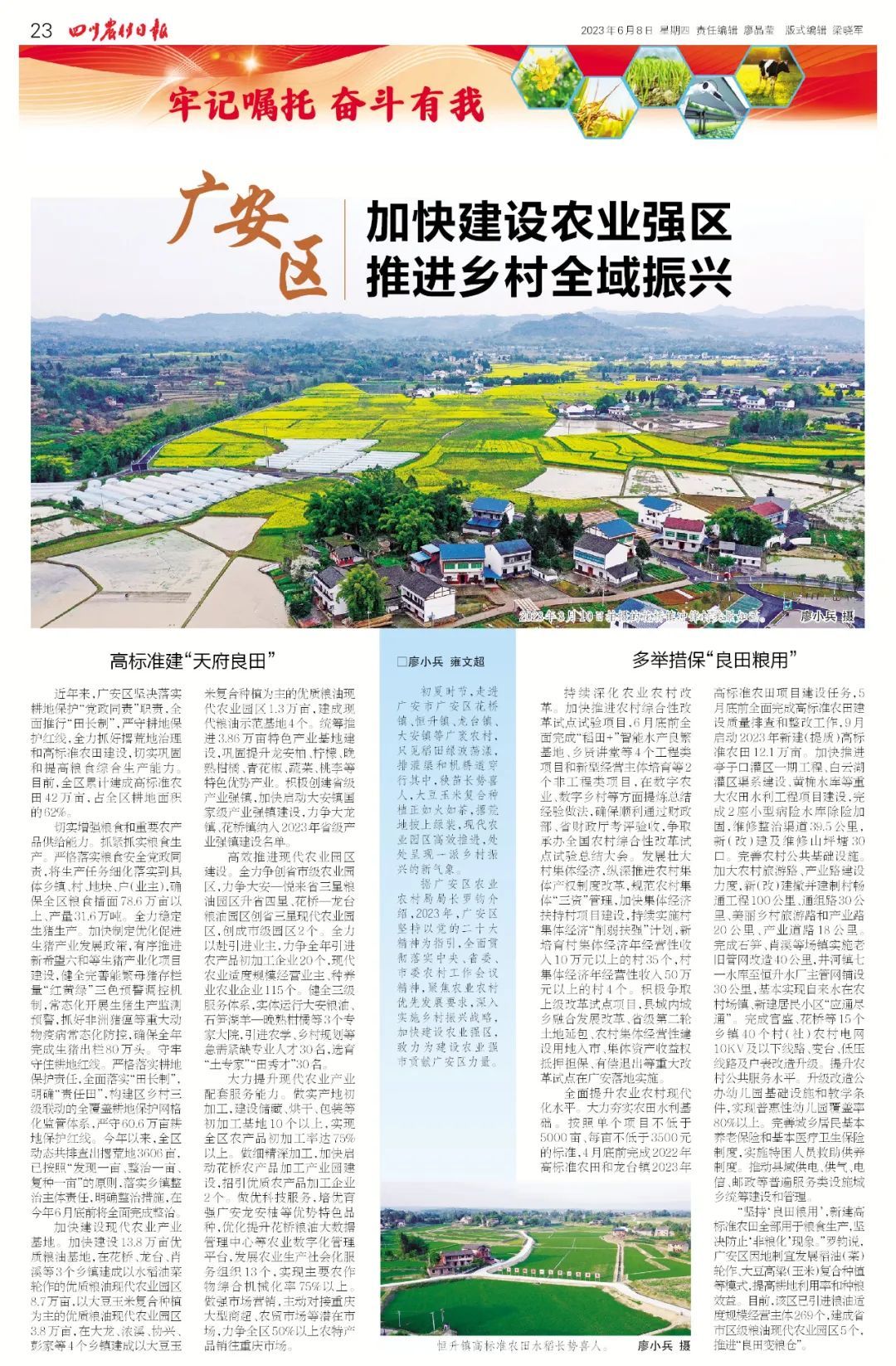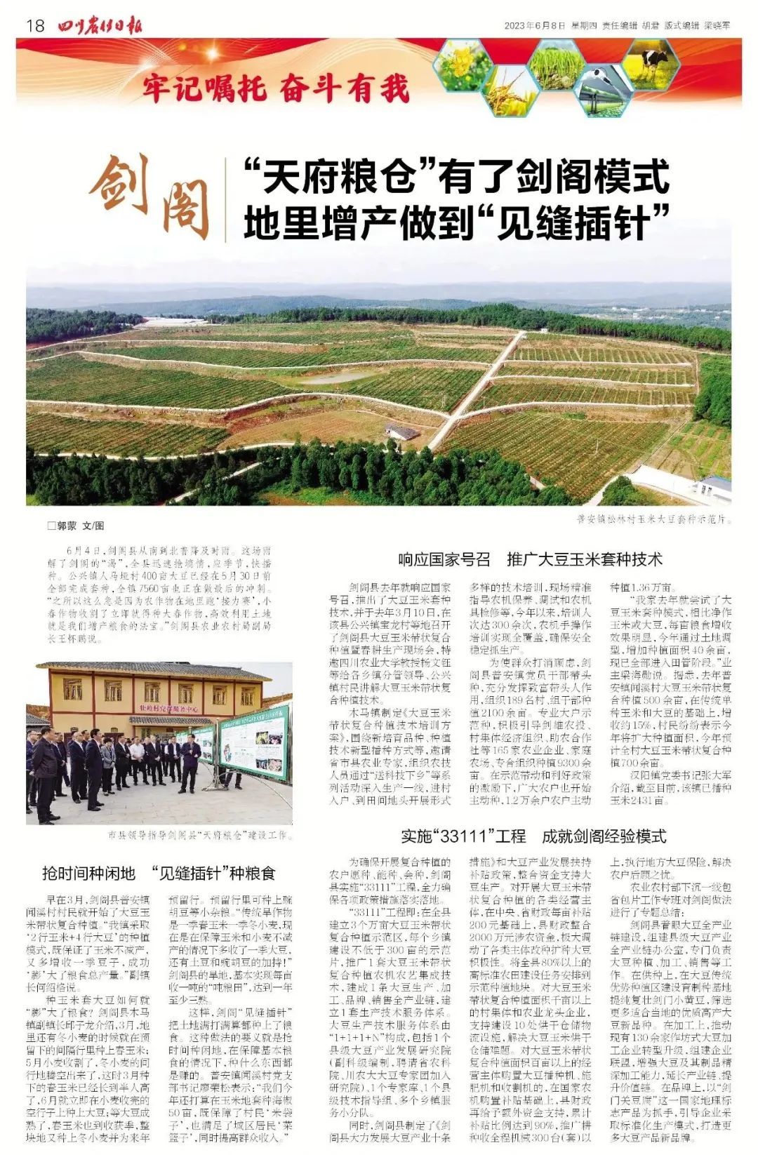 去年6月8日,习近平总书记来川视察,首站前往眉山市东坡区太和镇永丰村,强调要把粮食生产抓紧抓牢,在新时代打造更高水平“天府粮仓”。