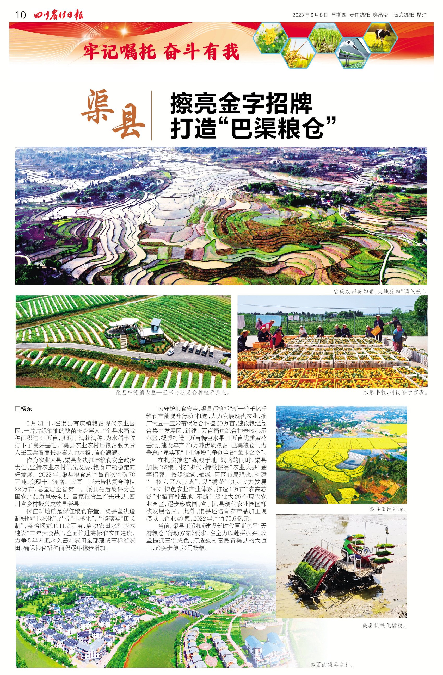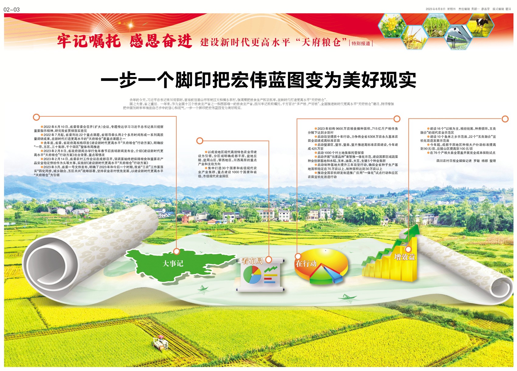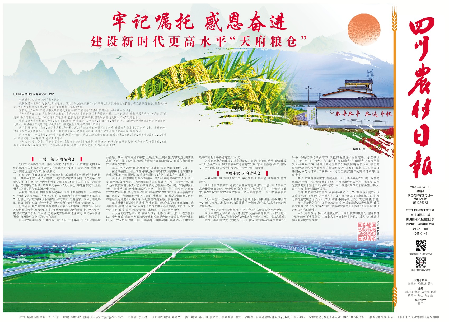 一年回眸,接续奋斗。值此重要节点,四川农村日报推出《牢记嘱托 感恩奋进 建设新时代更高水平“天府粮仓”》特别报道,用24个版的精品特刊,梳理和展示蜀乡各地在锦绣田野上书写的时代答卷,并以此为新的起点,斗志昂扬再出发!