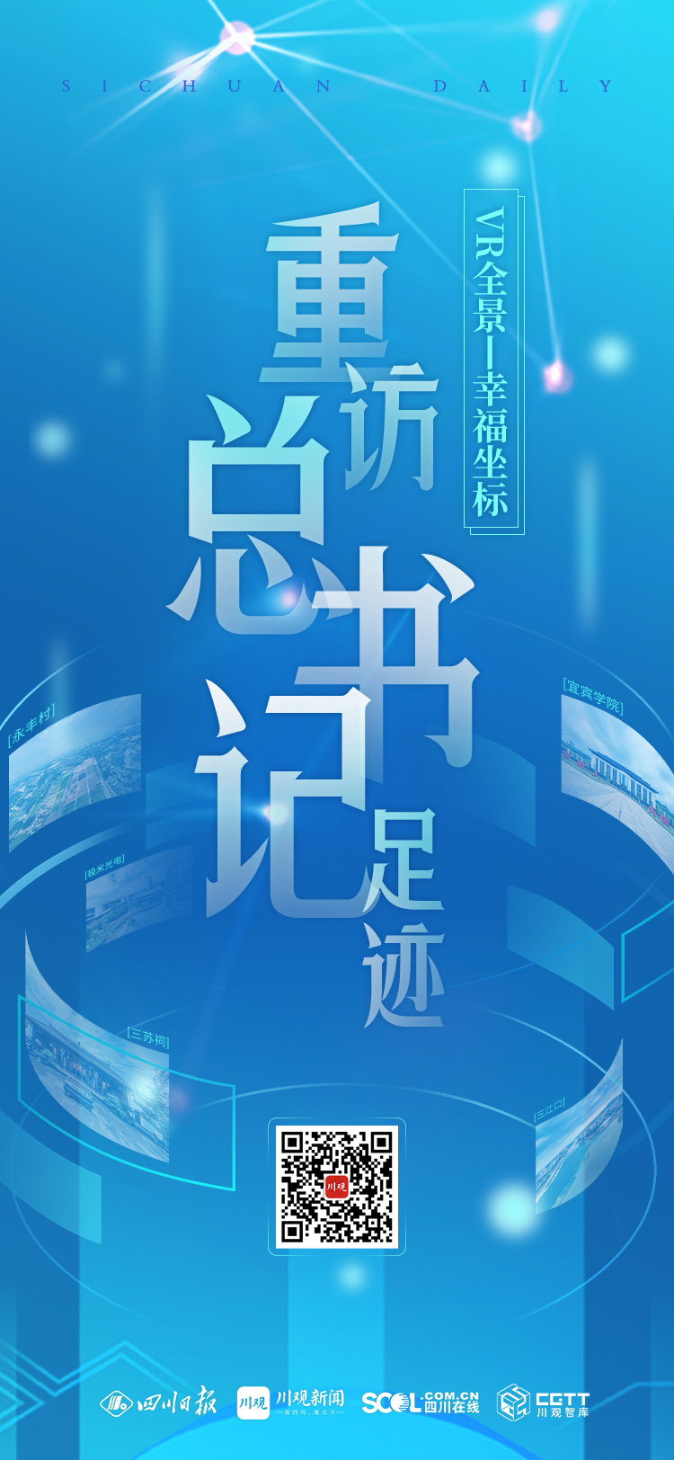 请跟随VR的沉浸式视角,再次来到眉山市永丰村、眉山三苏祠、宜宾三江口、宜宾学院、宜宾市极米光电有限公司,感受四川一年来的发展、人民全方位的幸福生活。