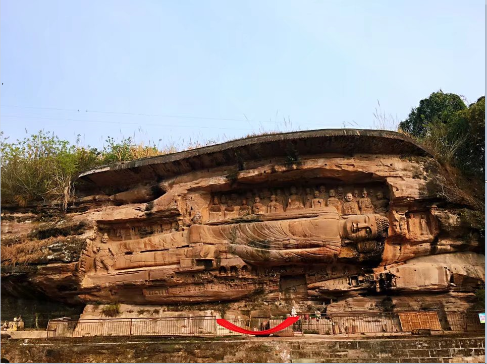 还有全国唯一一尊左侧卧佛,长23米的安岳释迦涅槃造像。