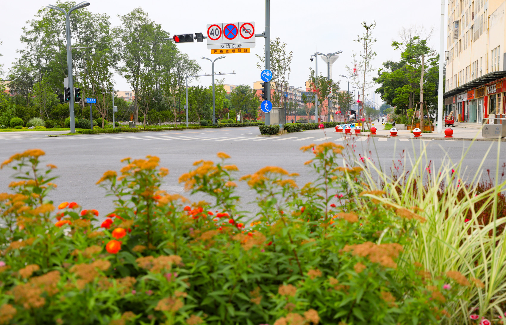 银杏、金桂、果石榴、红花碧桃、芙蓉葵,山桃草,红宝石糖蜜草,紫叶酢浆草……走在这条道路上,沿途的各类景观也让人印象深刻。