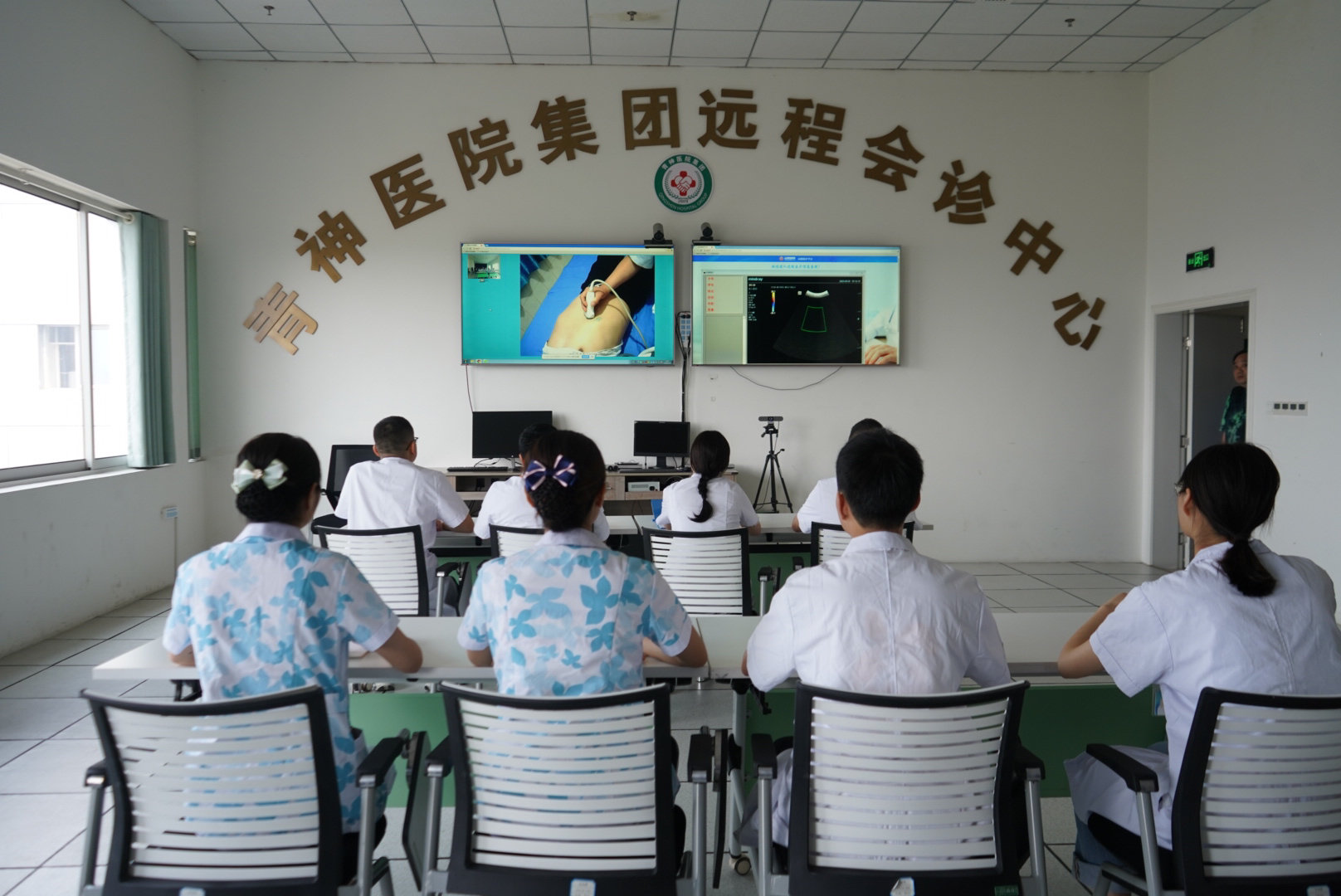 青神县人民医院,医护人员为基层医疗机构进行远程会诊。魏冯 摄