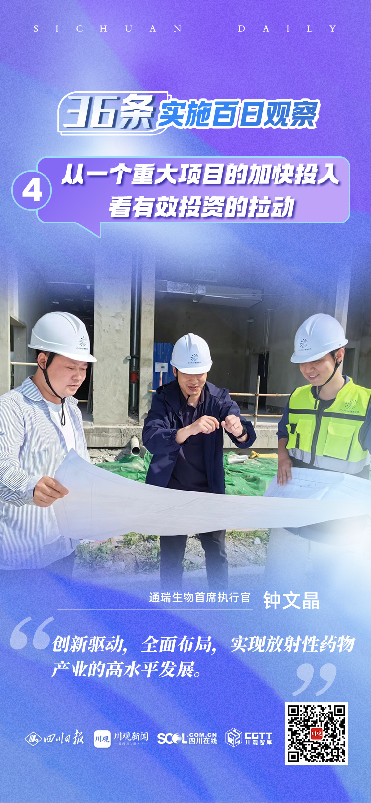 扩大有效投资,不但推进了重点项目落地落实,也增强了企业高质量发展的意愿。通瑞生物首席执行官钟文晶表示,将不负所望打造国际一流、国内领先的核药产业化基地,为成都生物医药产业“建圈强链”作出贡献,促进放射性药物产业集群建设,助力成都医学城经济高质量发展。