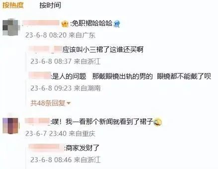不少网友前往评论区吃瓜打卡,有人表示,“这裙子,没这身材还真穿不了”,有人调侃商家发财了,还有网友称这条裙子为“免职裙”。