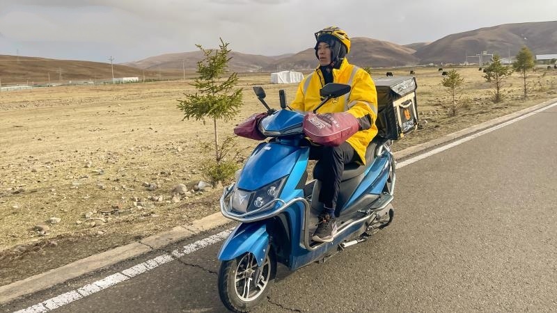 在高原的外卖骑手