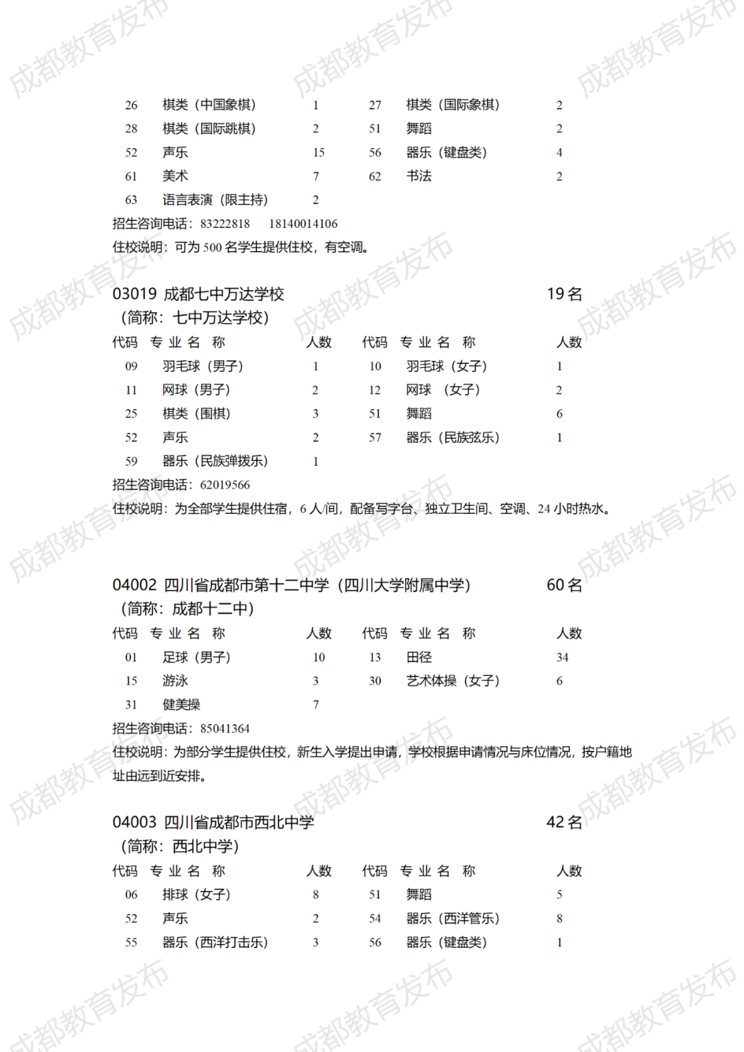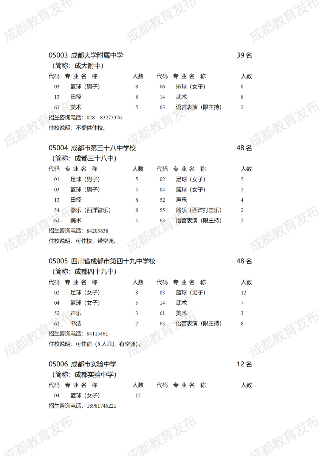 6月9日,成都市教育局发布该市2023年普通高中艺体特长生招生计划。