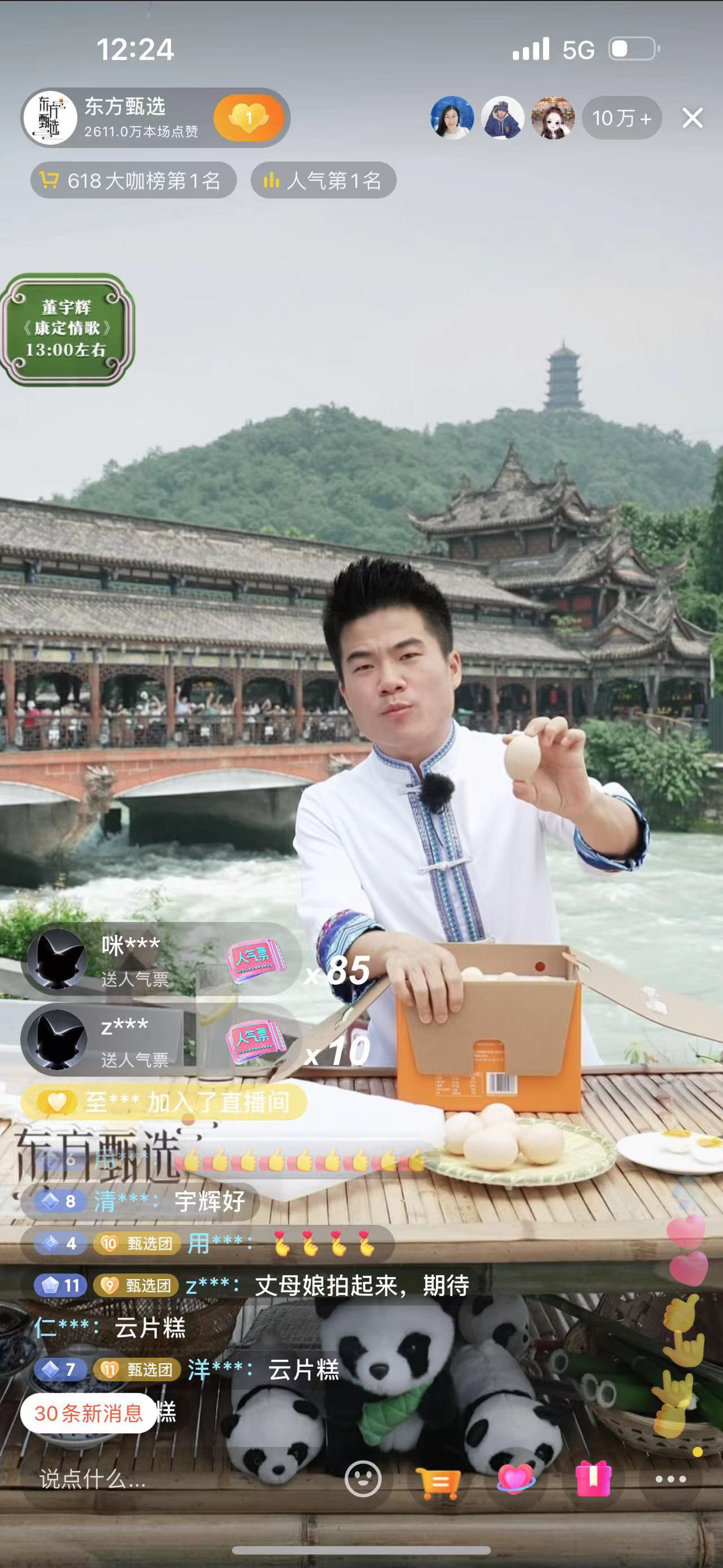 当天上午8时,直播专场正式开播后,直播间同时在线人数持续“10万+”。在东方甄选主播的精彩讲解中,多款四川产品仅上架10分钟就被抢售一空。