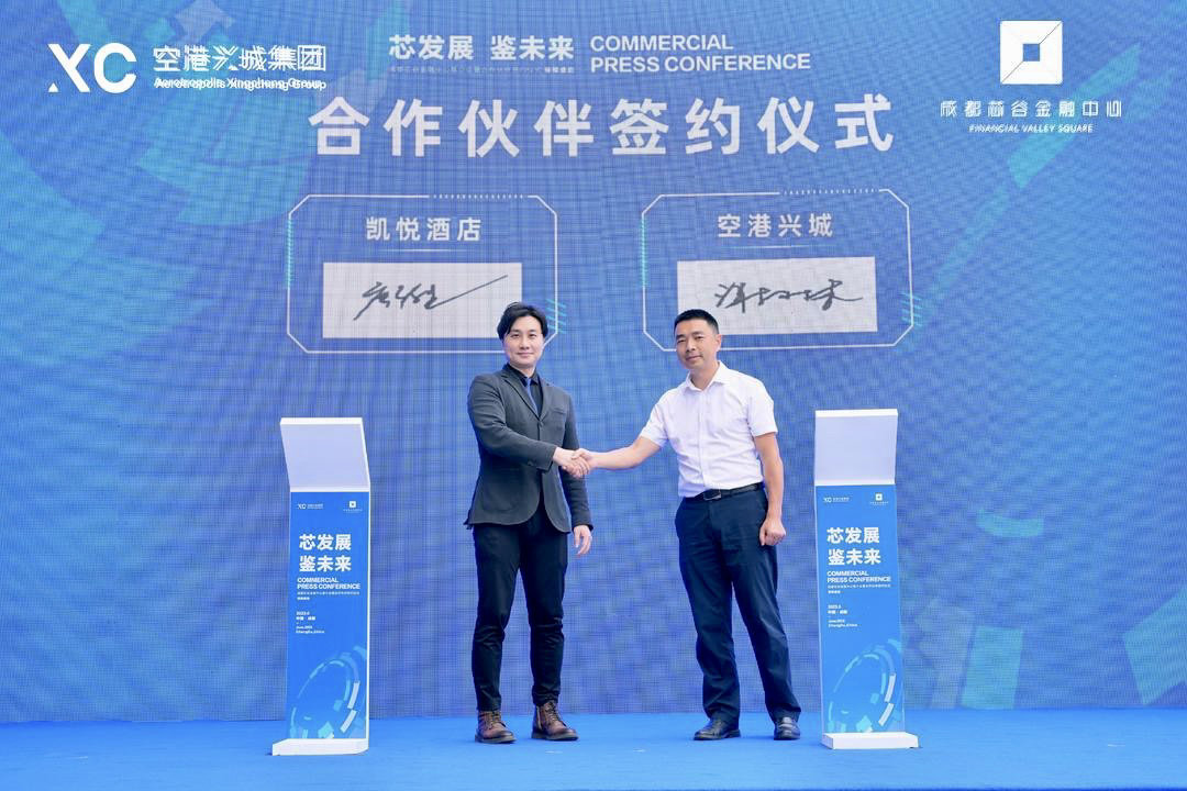 仪式当天,成都空港兴城置业有限公司与凯悦酒店集团正式签约,并与安德鲁森、A咖啡、四川星耀盛世体育用品有限公司、成都吉可餐饮管理公司、TURBOS、名创优品、泰迪文化公司、华伟通讯共计8家公司签订意向入驻协议。