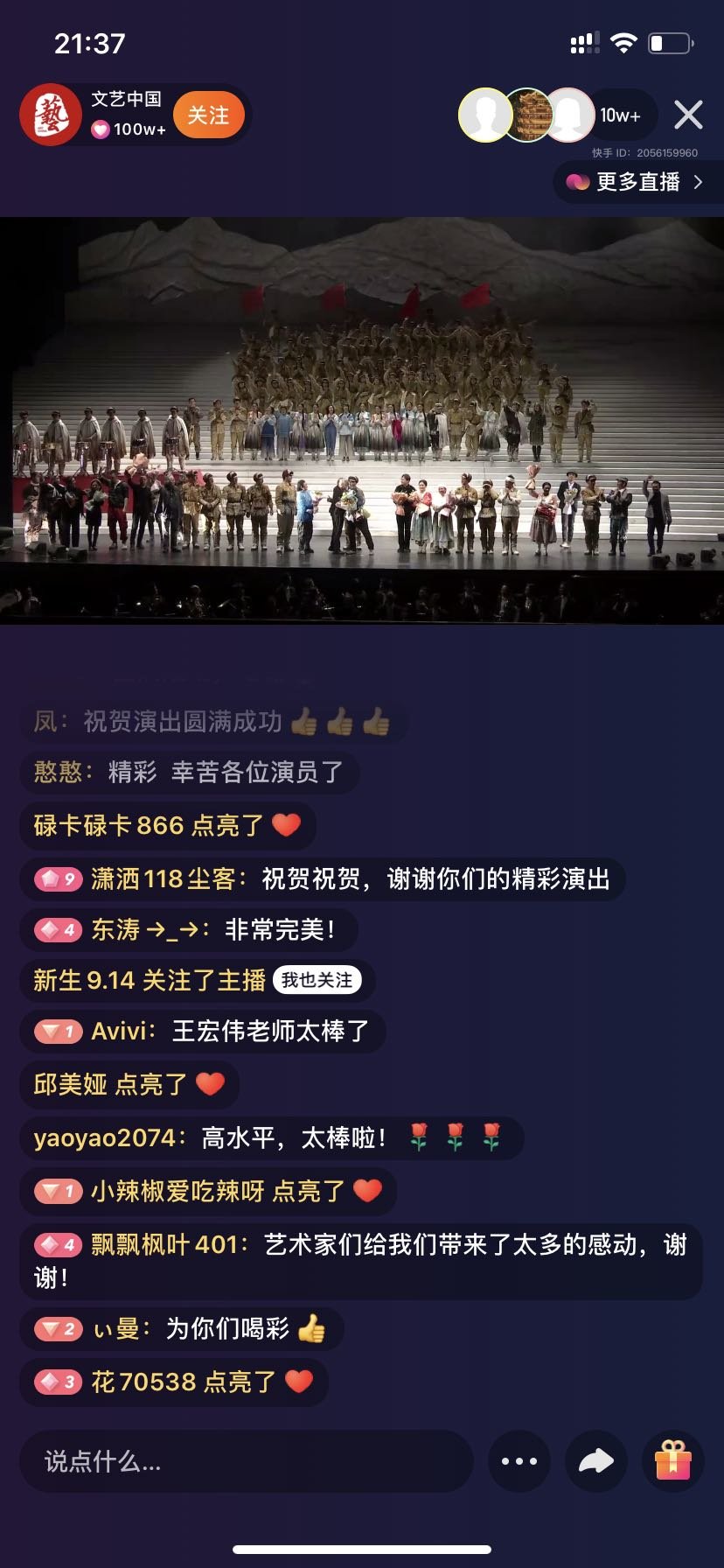 “专业水准的演出,震撼。”网友“月光如雪”虽然不能亲临现场,但在短视频平台上忍不住边看直播边留言。10月26日晚,以川籍英雄黄继光的事迹为主线创作的大型歌剧《同心结》在国家大剧院上演,作为国家文旅部“纪念中国人民志愿军抗美援朝出国作战70周年舞台艺术优秀剧目展演”入选的三部剧目之一,不断升级打磨后的《同心结》代表四川与全国观众见面,并网络同步直播。