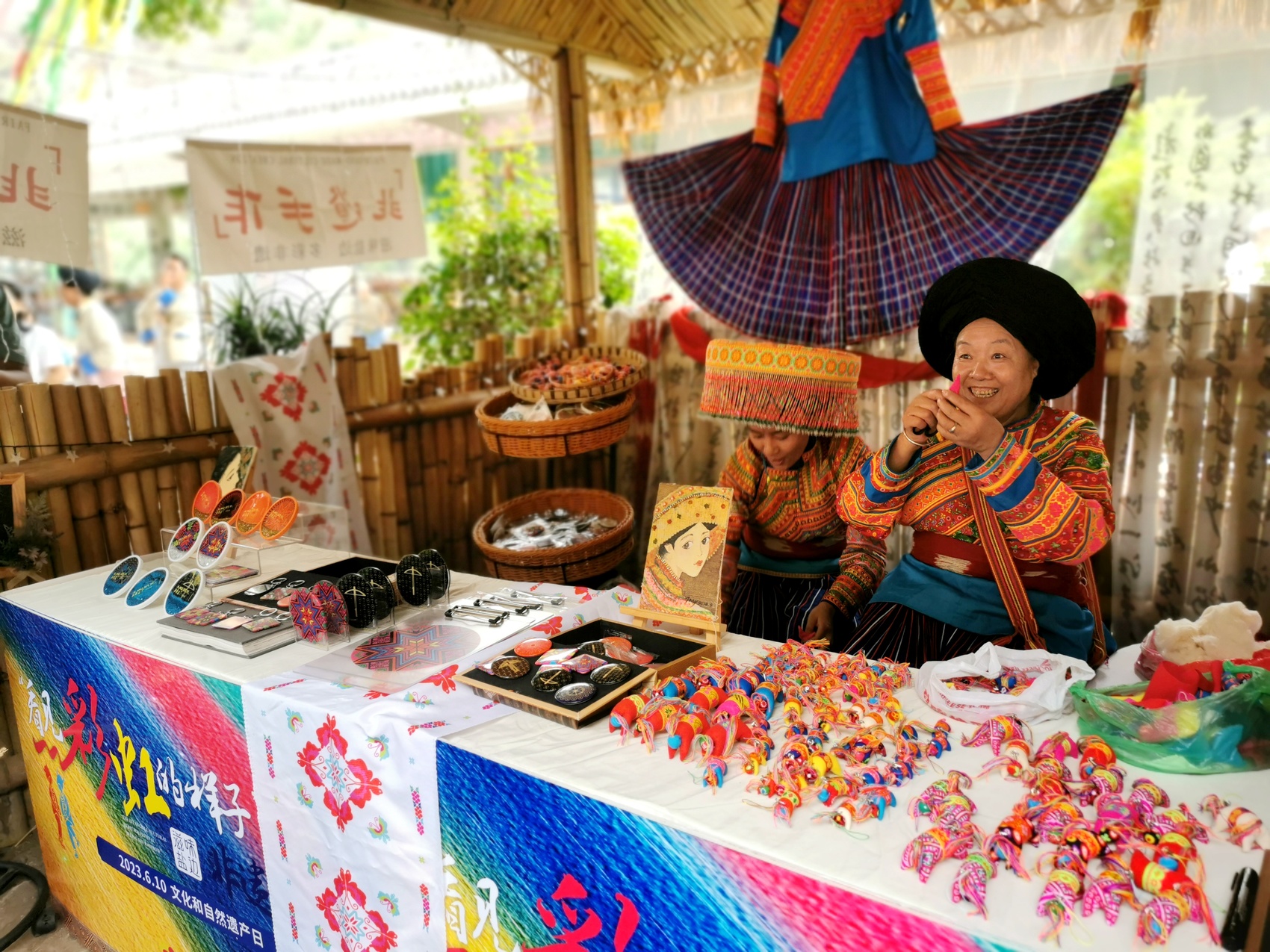 在6月10日举办的“看见,彩虹的样子”2023盐边非遗节活动上,攀枝花市盐边县“本土造”的傈僳族文创产品“阿木诗依”引宾客青睐驻足。