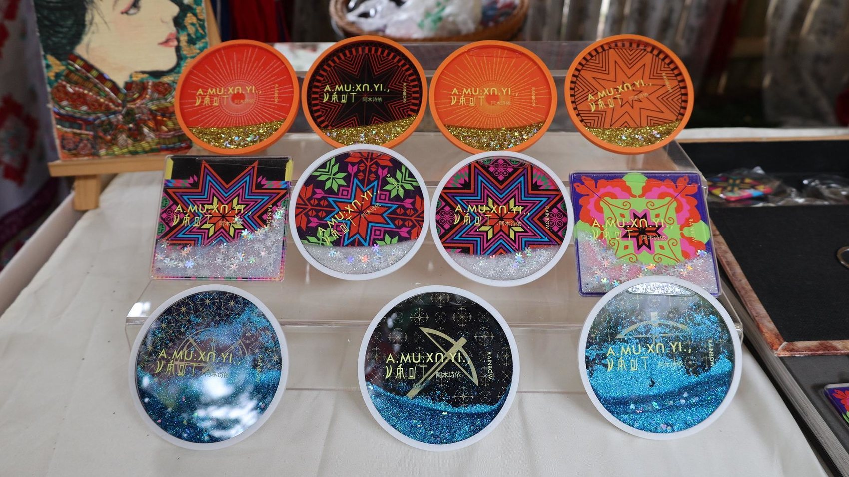 如彩虹般斑斓的手工刺绣,独具匠心的日用品,潮范十足的工艺品,每一件“阿木诗依”文创产品,都能找到傈僳族原生态民族文化的符号,记录着傈僳族的历史、故事和传说。