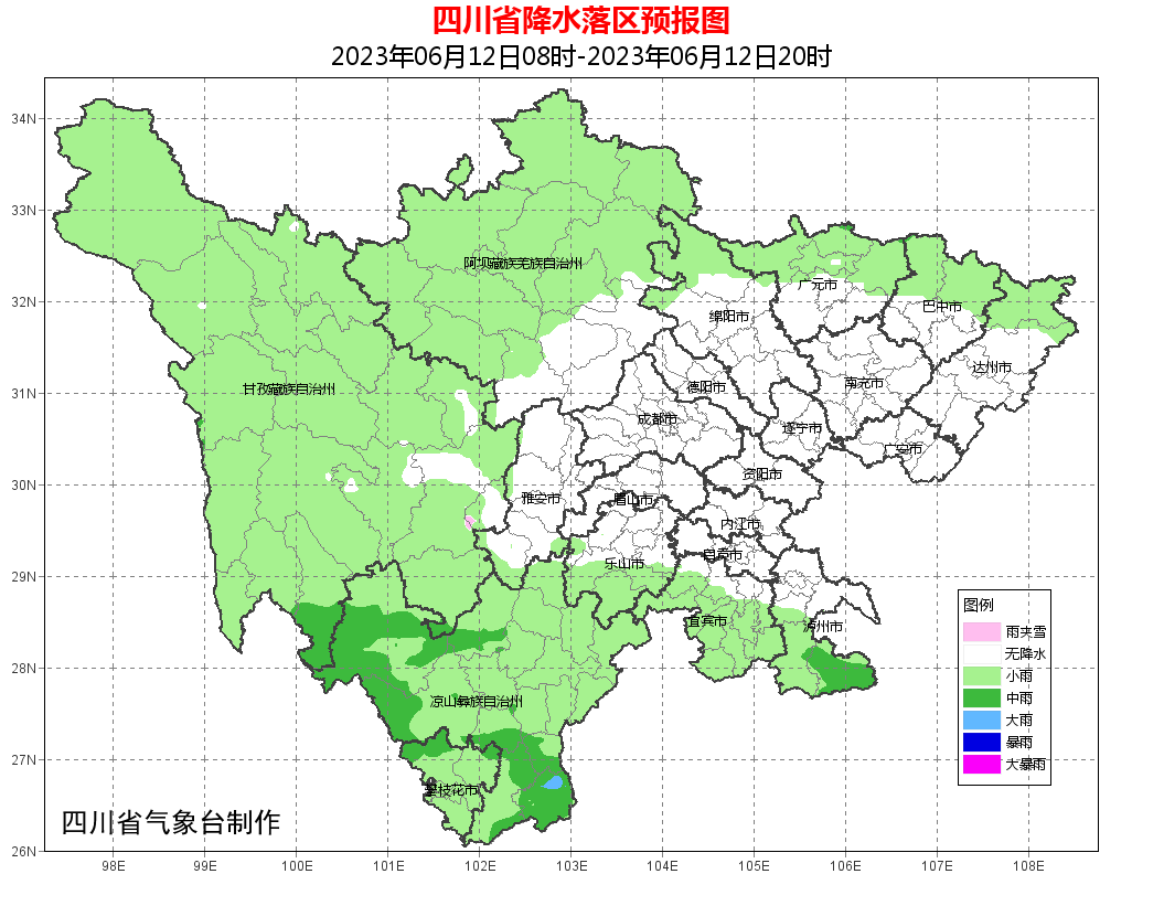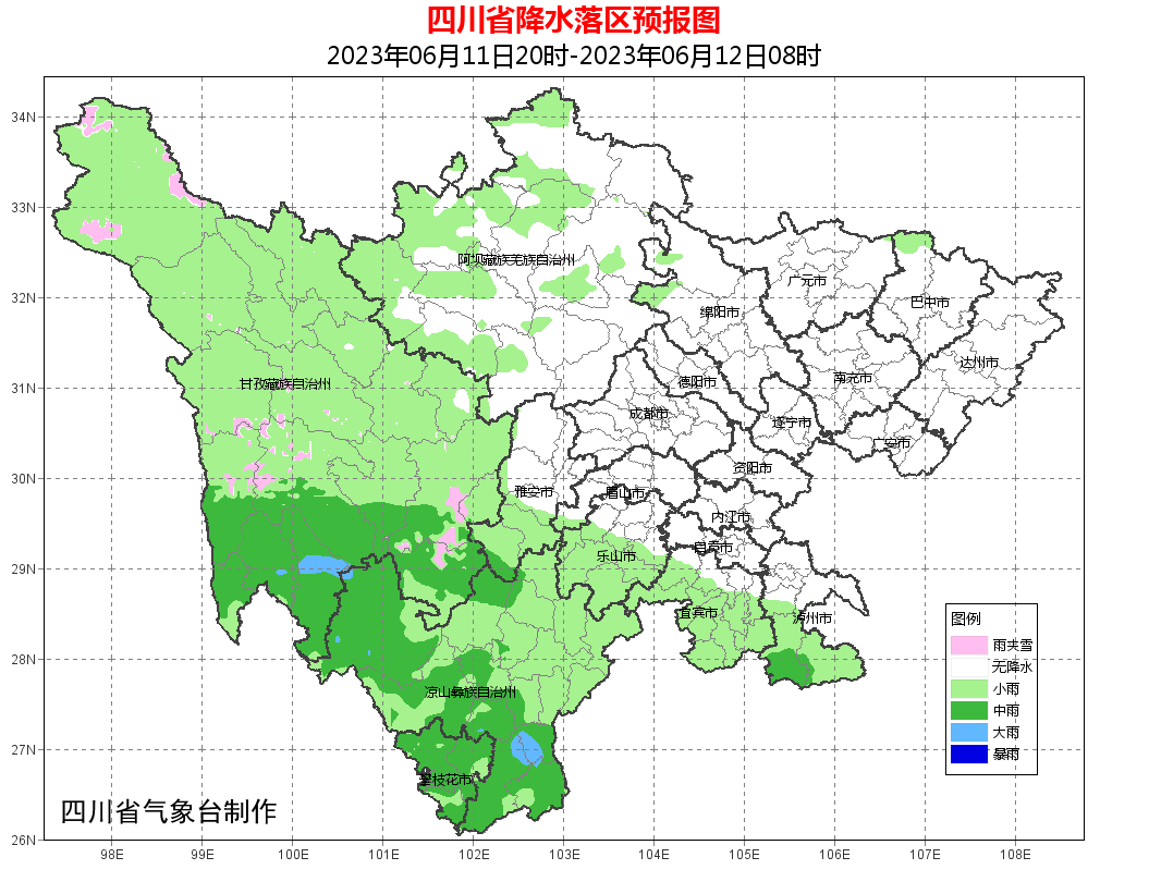 据最新气象资料分析:6月11日20时~14日20时,川西高原和攀西地区阴天间多云有阵雨或雷雨,雨量小到中雨,局部大雨到暴雨,大部地方森林火险气象等级2级。请相关州市加强火源管理,做好森林防火工作。