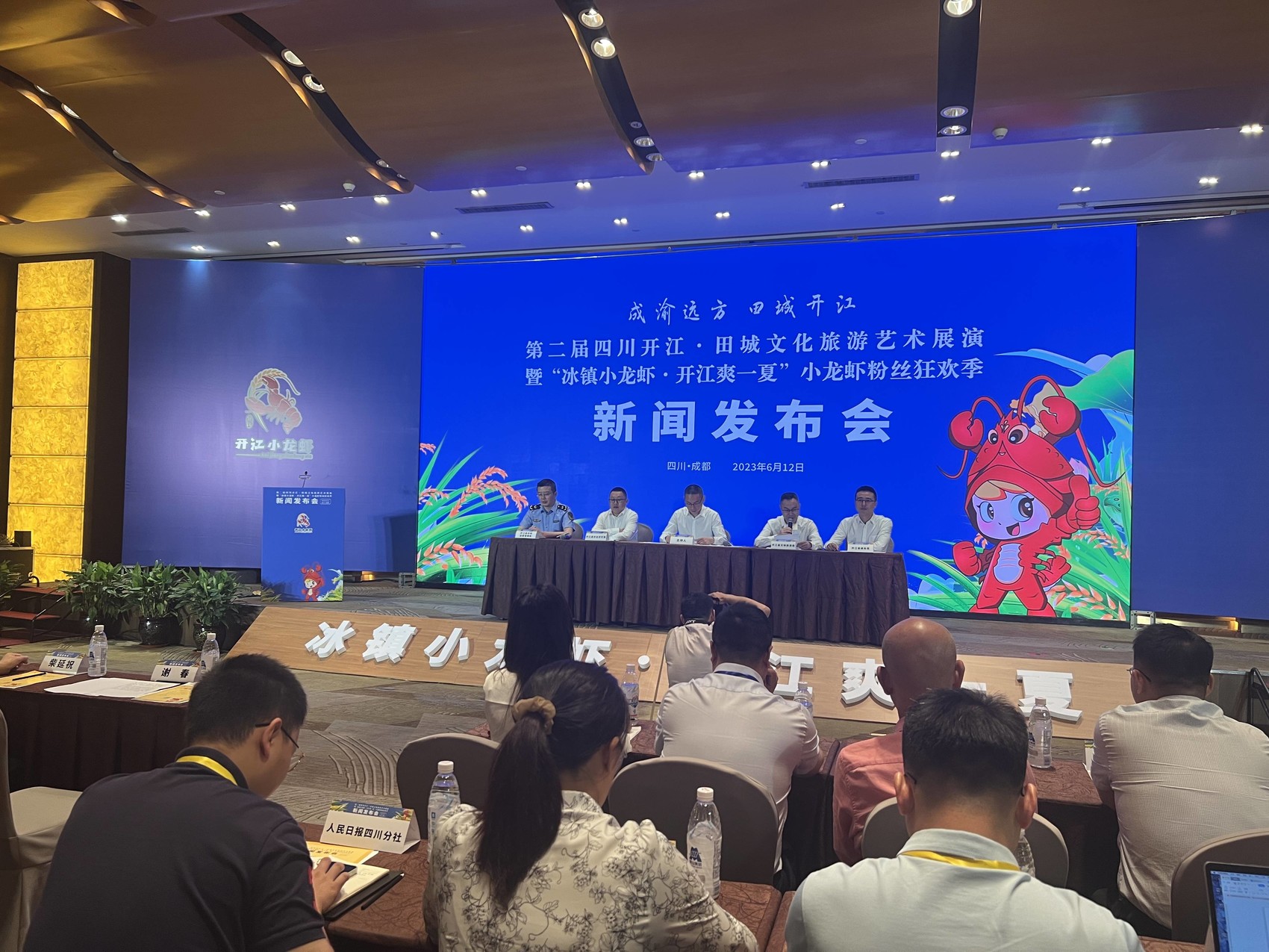 6月12日,第二届四川开江·田城文化旅游艺术展演暨“冰镇小龙虾·开江爽一夏”小龙虾粉丝狂欢季新闻发布会在成都召开。记者从会上获悉,本次活动由四川省旅游协会、四川省文化产业商会、开江田城集团共同主办,相关活动将于6月20日启动。