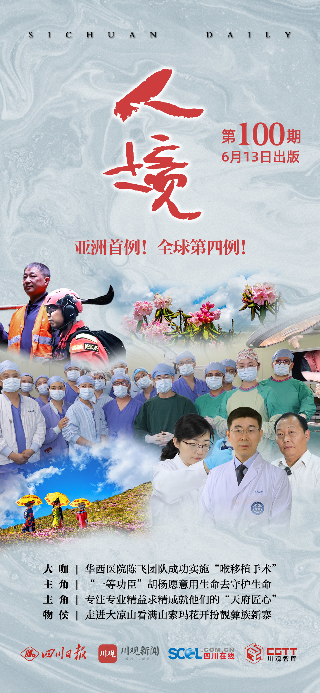 6月13日,《人境》(总第100期)来了。自2020年9月22日与读者见面,100期,我们报道的人物约有350人,我们力图聚焦四川、聚焦当下、聚焦个体,以更温暖的方式、更适合深阅读的方式,关注发生在四川的新鲜事、有趣事和人物命运。正如哲学家罗素所说:须知参差多态,乃是幸福的本源。世界本就是多姿多态,丰富多样的。《人境》将一如既往,去报道更多独具魅力、与众不同的各类人物,传递直击心灵的力量,写出人物的时代价值。本期《人境》,带大家认识的主角也非常有魅力,他们在各自领域,用专业技能守护生命,是值得我们敬佩的人。