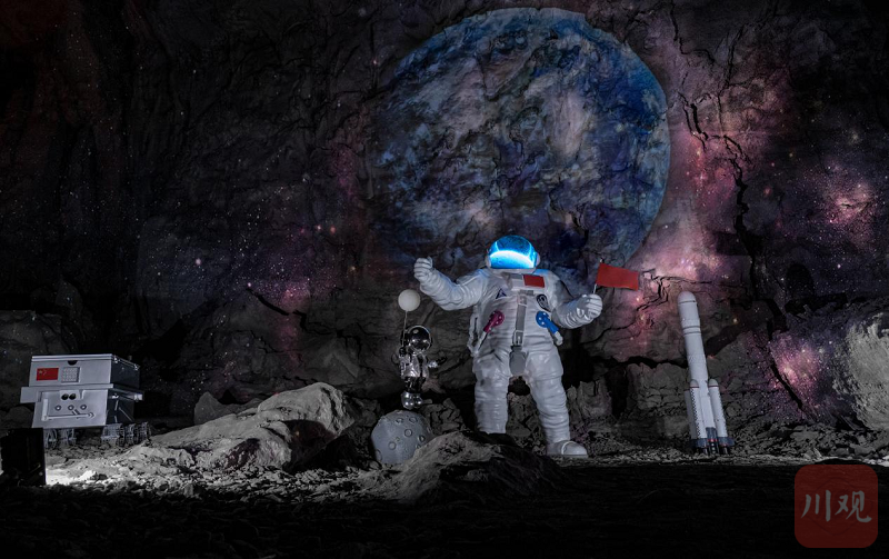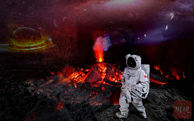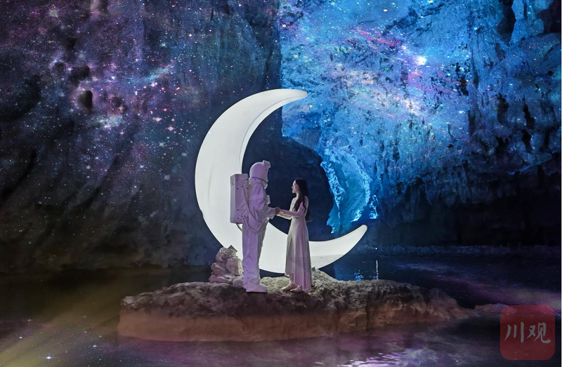 兴文石海景区充分利用天泉洞洞厅宏大的自然优势,结合数字技术和场地条件,以“地质+航天”为主题,打造了浪漫星河、火山熔岩、月球基地、宇航洞降等沉浸式光影项目。