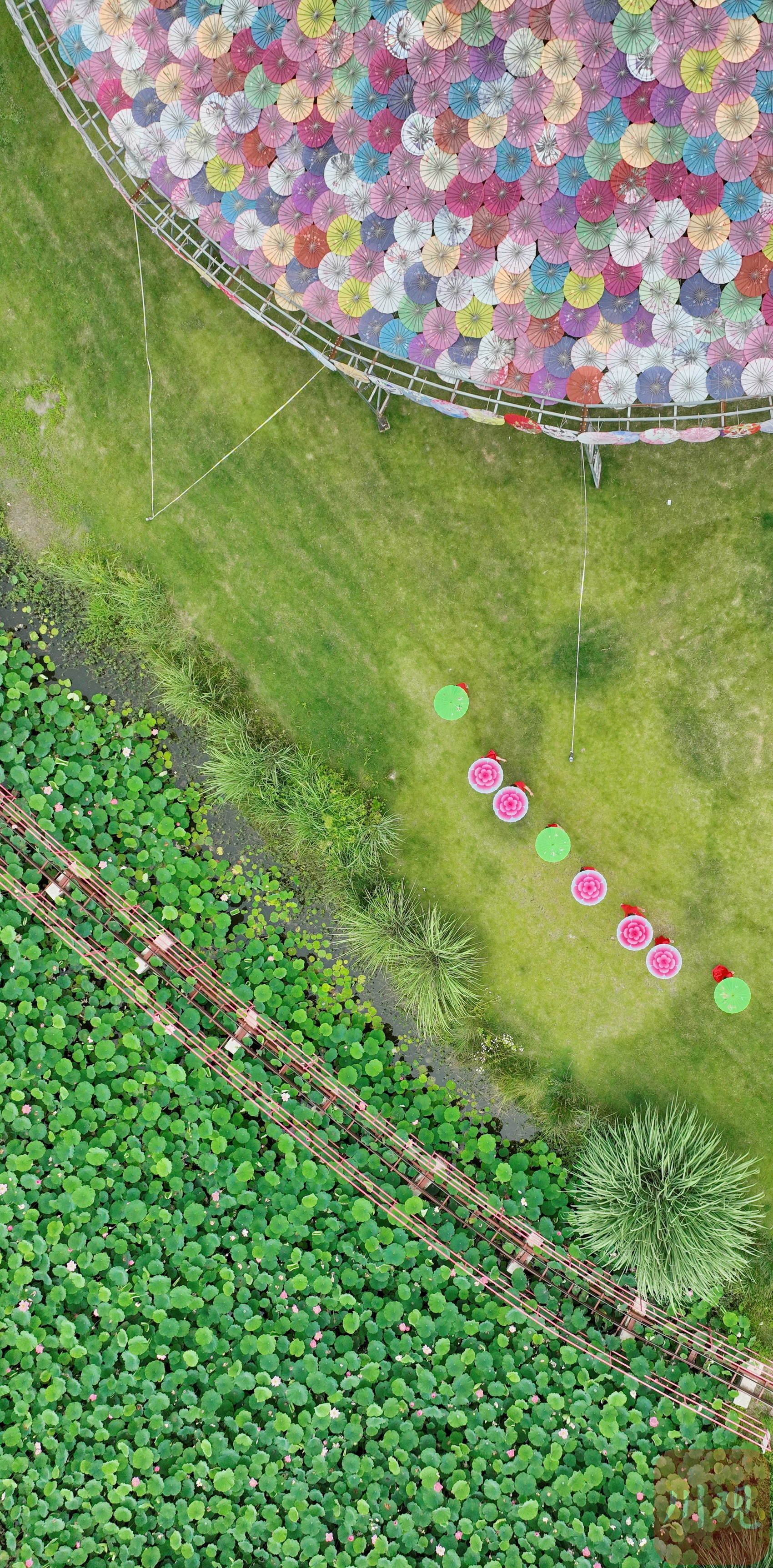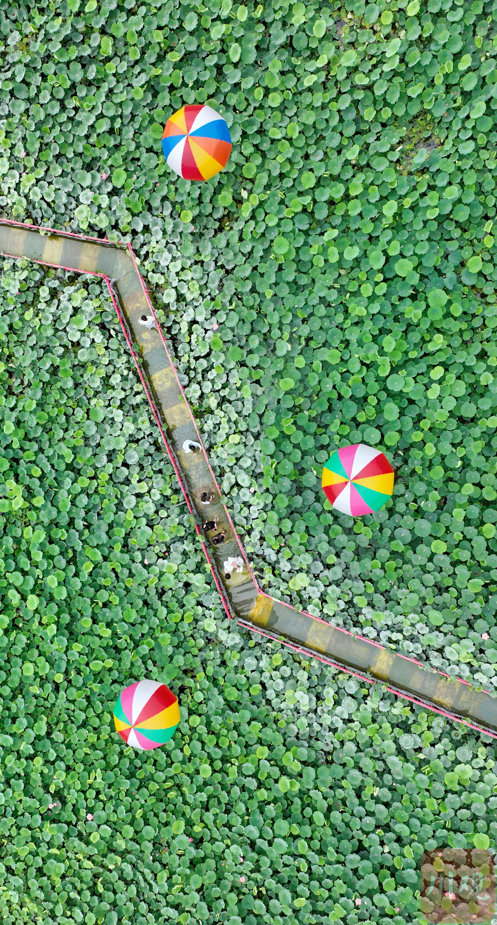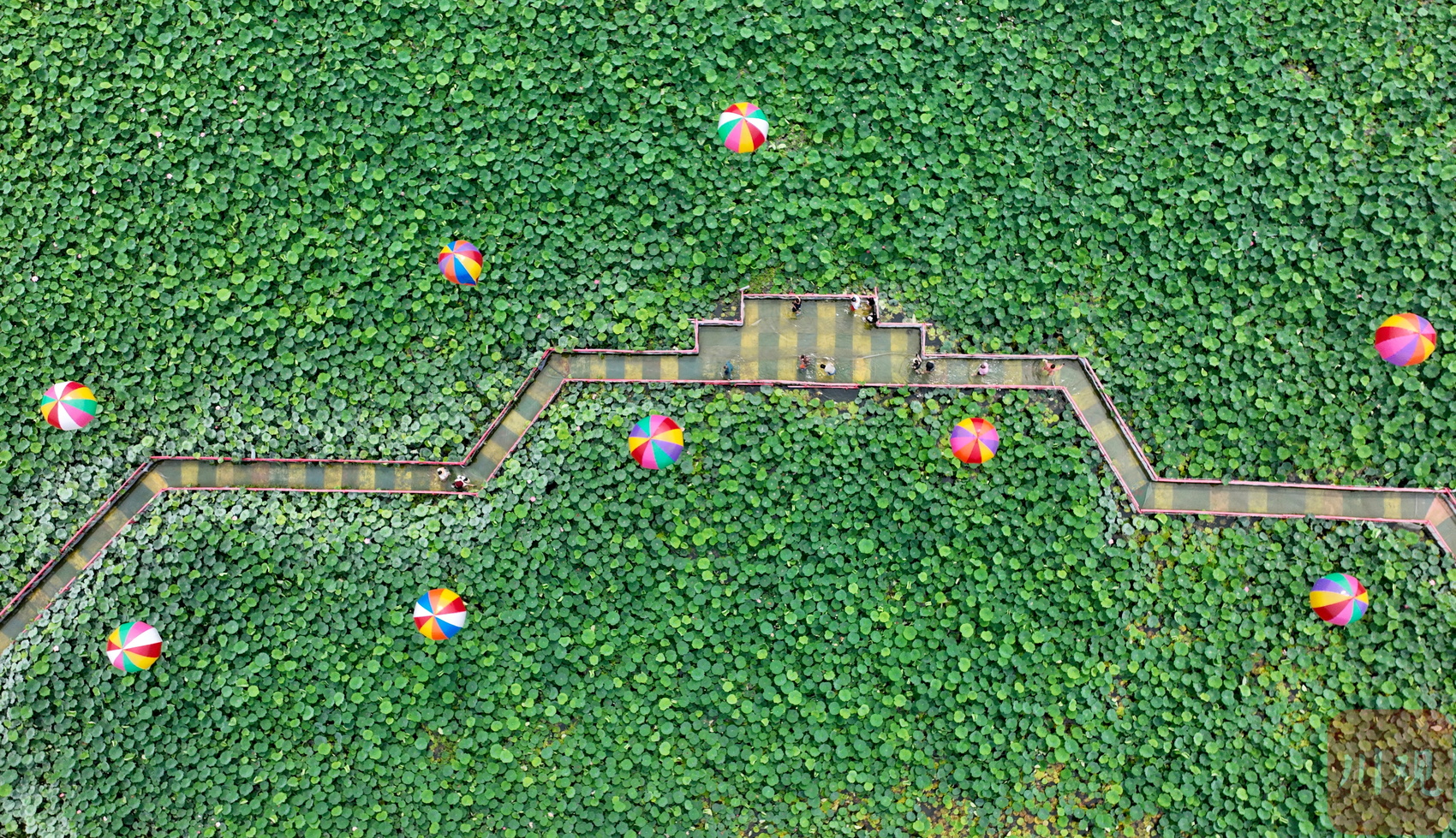 2023年6月13日,游客在成都市双流区黄水镇杨公社区的印象荷花景观内休闲赏景。