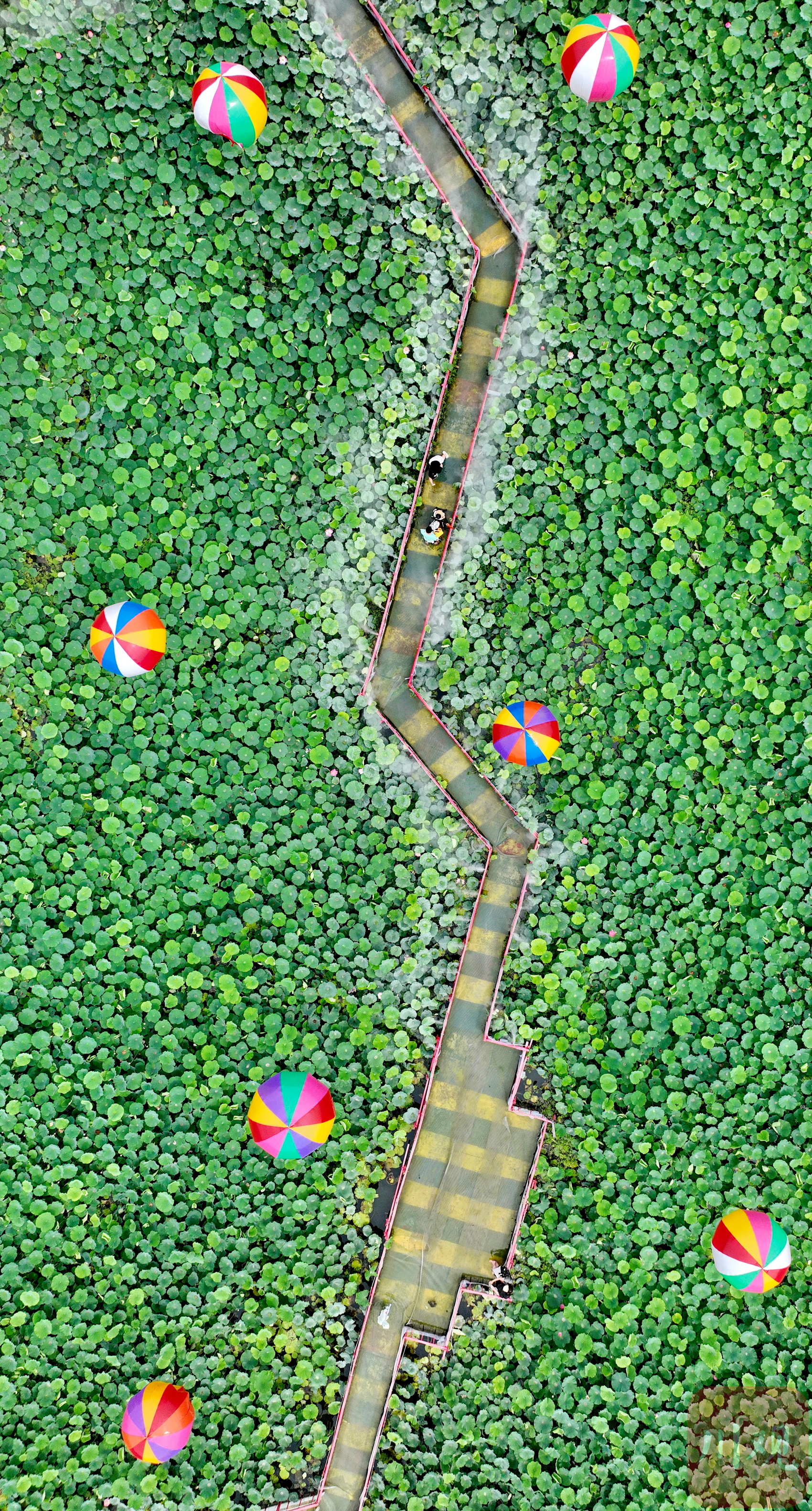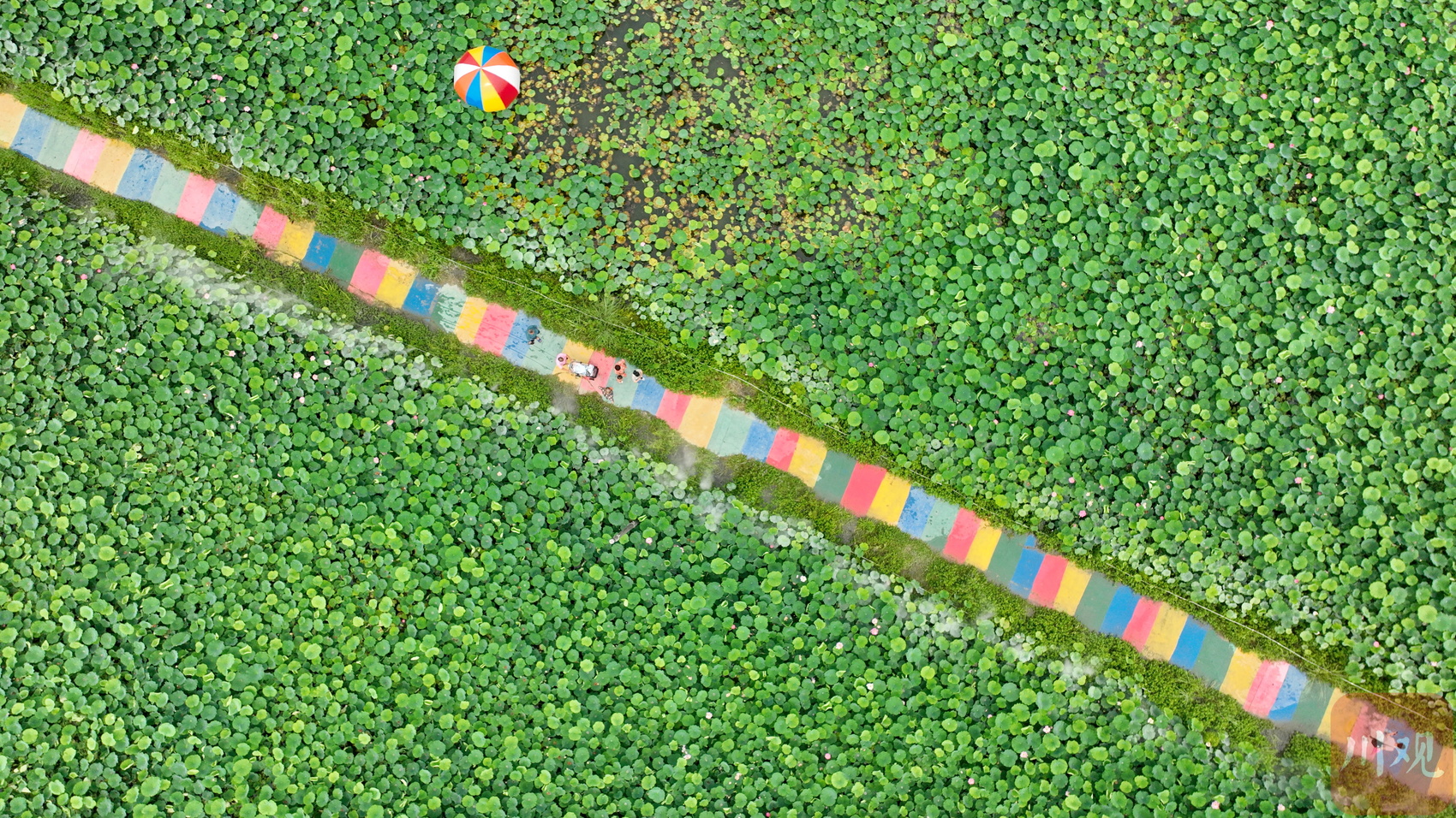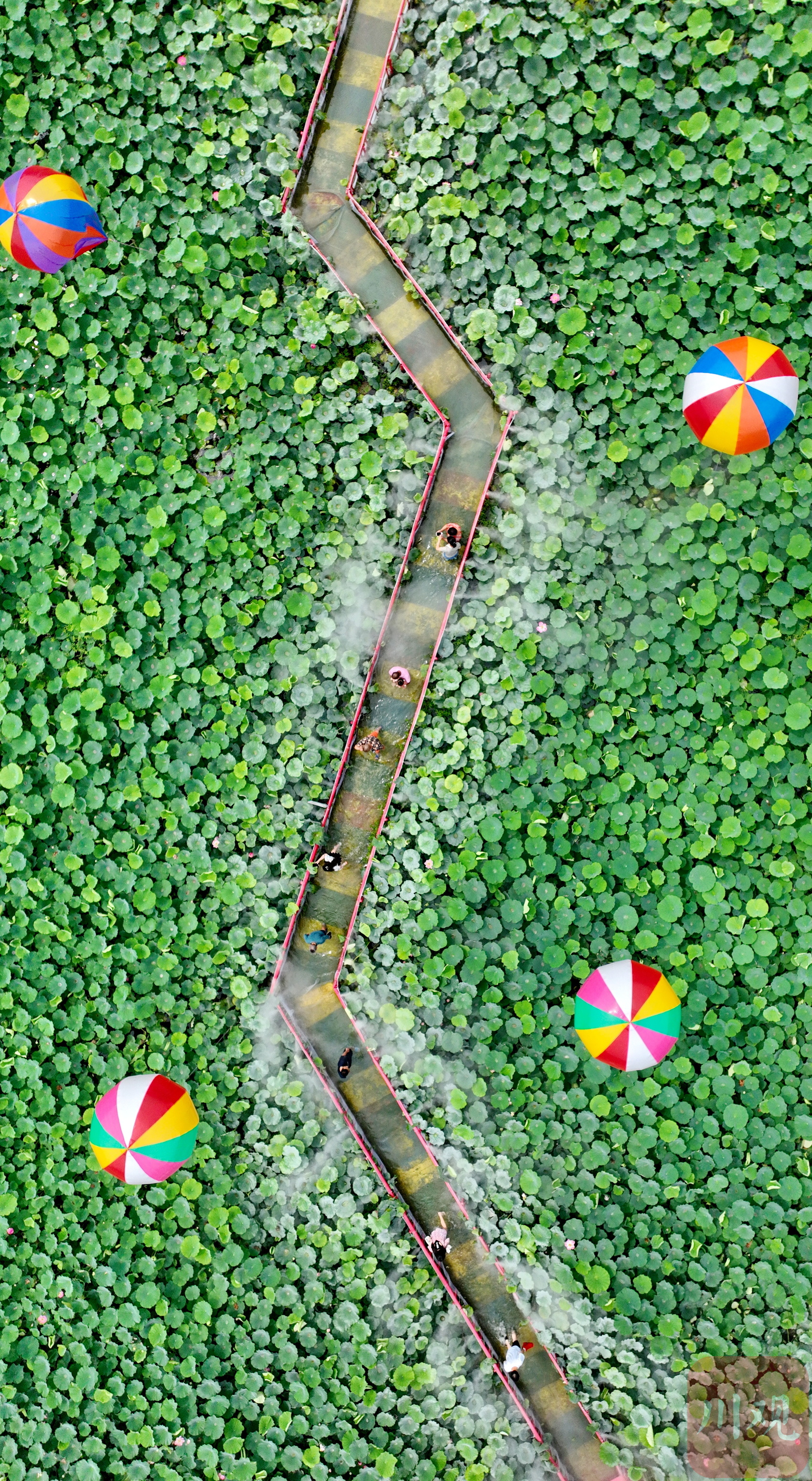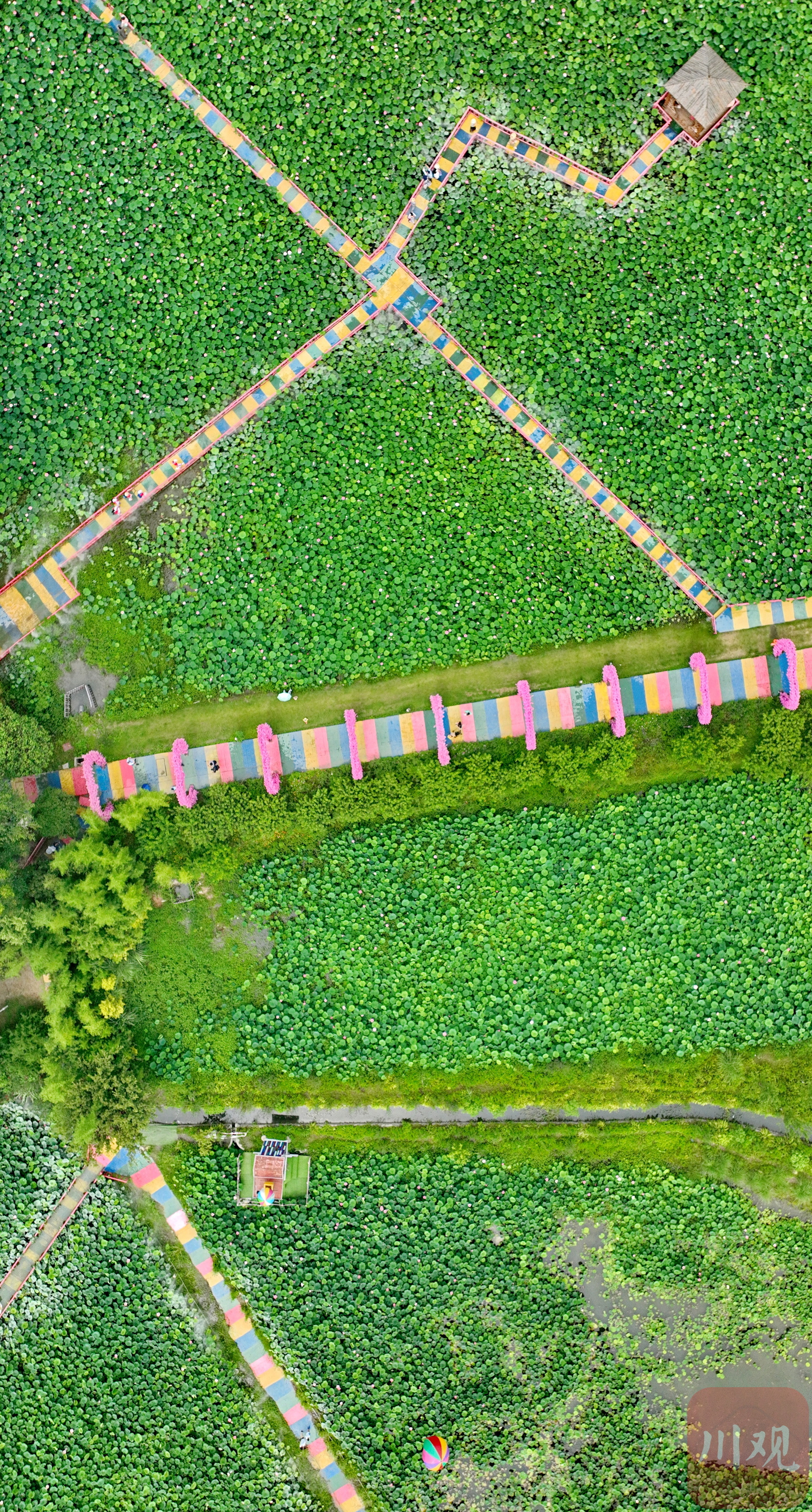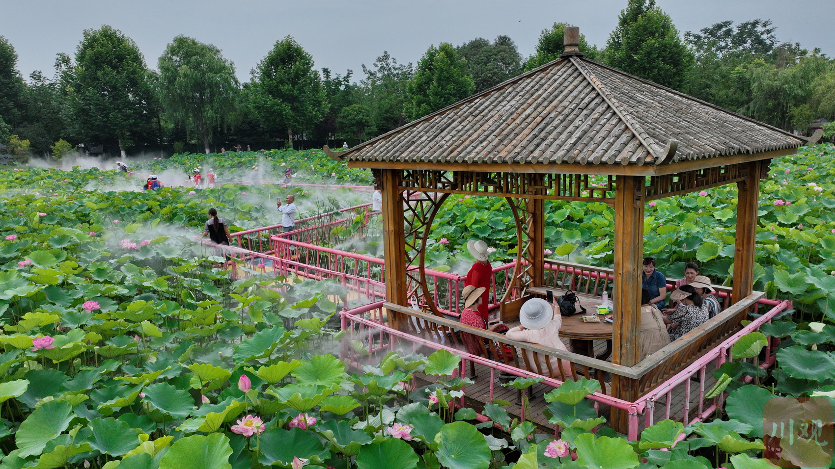 2023年6月13日,游客在四川省成都市双流区黄水镇杨公社区的印象荷花景观内休闲赏景。