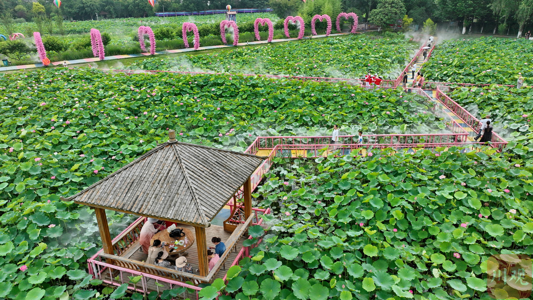 连日来,在成都市双流区黄水镇杨公社区的印象荷花景观内,300亩荷花陆续绽放。目前这里的荷花正值最佳观赏期,吸引众多市民和游客前来观赏。据了解,印象荷花景观是以荷塘文化为主题,集观光旅游、摄影绘画、亲子劳作、餐饮会议、儿童游乐、生态种植、瓜果采摘为一体的大型农业观光园。