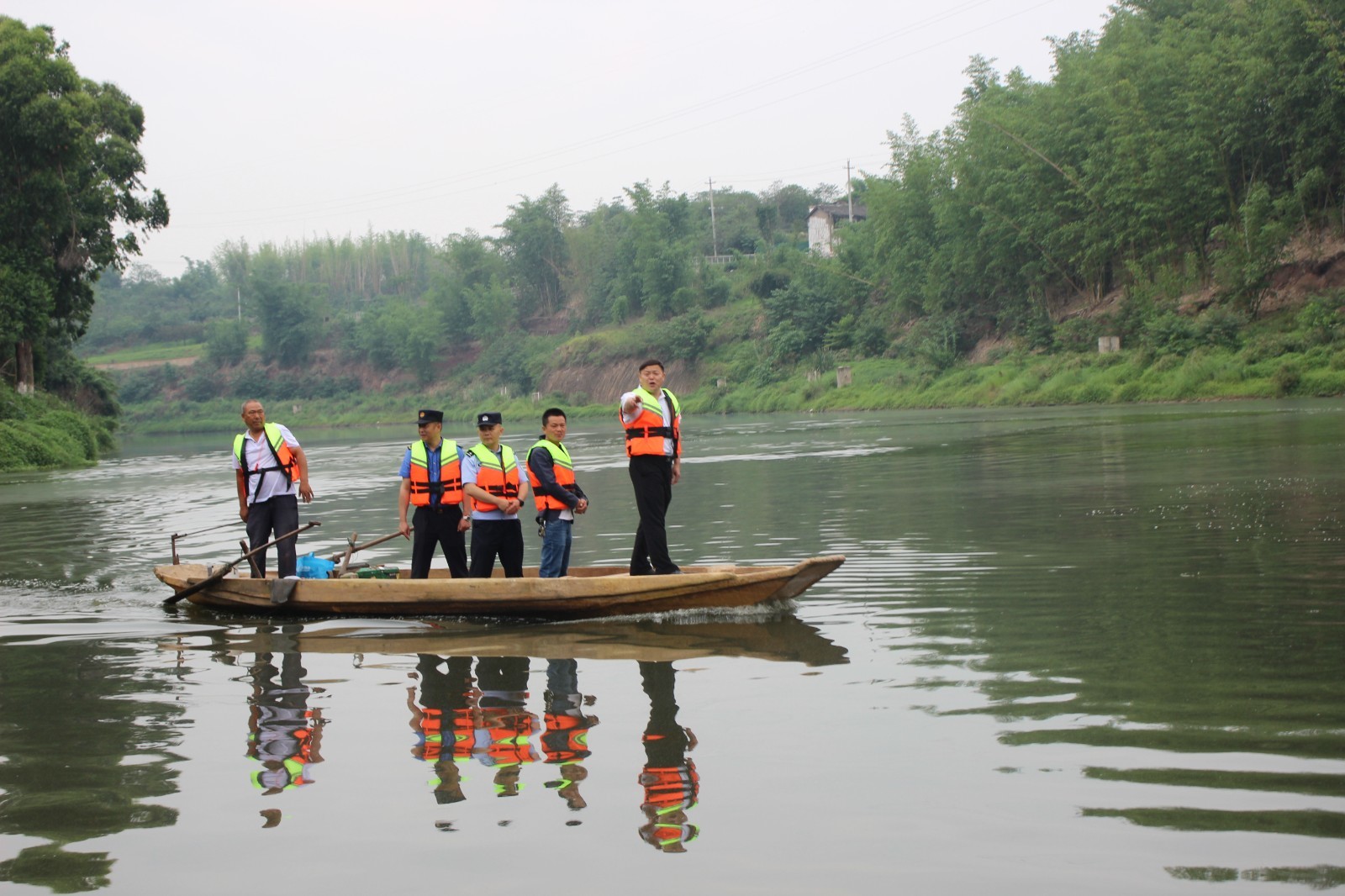 6月13日清晨,阳光穿透薄雾,洒在平静的釜溪河面上,自贡高新区重滩村四组退捕渔民吕全富来到自家渔船上,同街道工作人员一起,开始又一天常态化的釜溪河禁渔巡查工作。