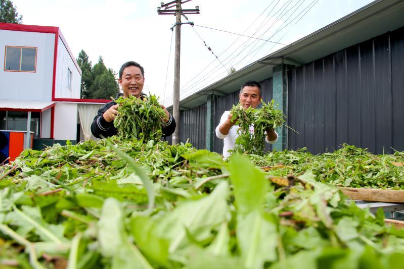 在大家的印象中,蒲公英是路边的杂草,但南充市顺庆区双桥镇五通山村村民通过种植实践,杂草成为了致富的“金苗苗”。10月23日,记者在该村中药材种植基地看了一片繁忙景象,村民正忙着收割叶子以及蒲公英根部,随后并将其洗净晾晒制作成蒲公英茶叶。