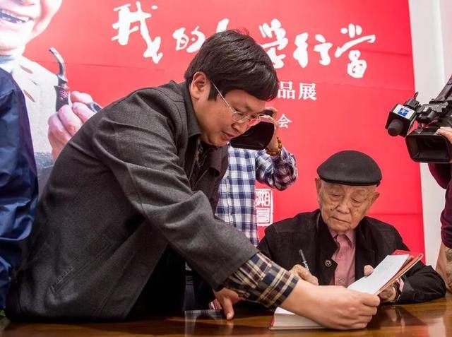2014年4月20日 “我的文学行当——黄永玉作品展”在京开幕,黄永玉为读者签名售书。新华社图片