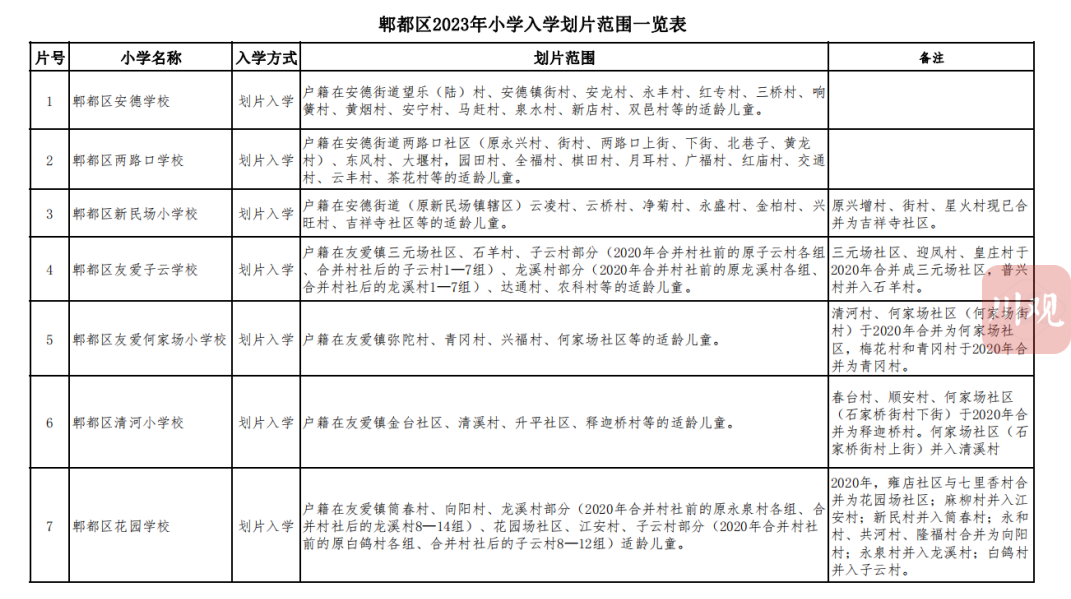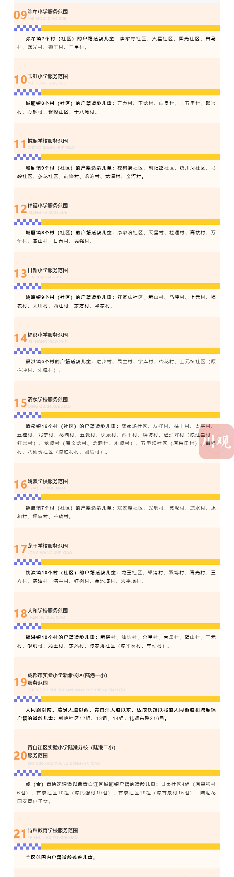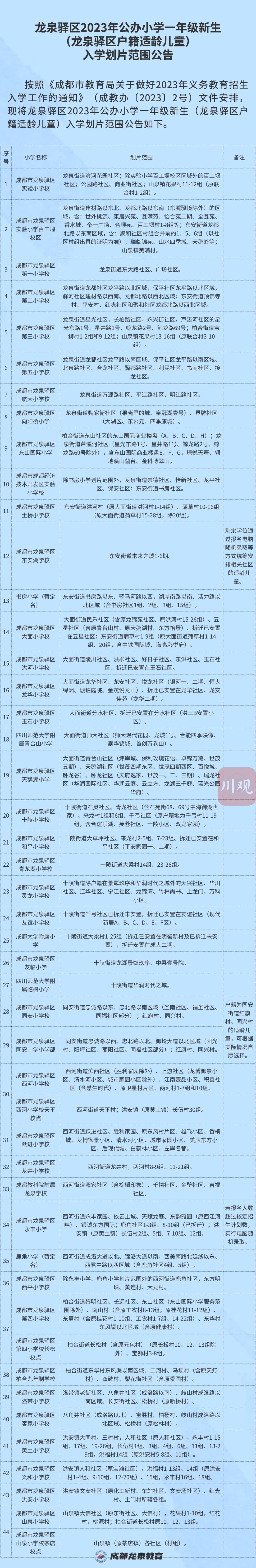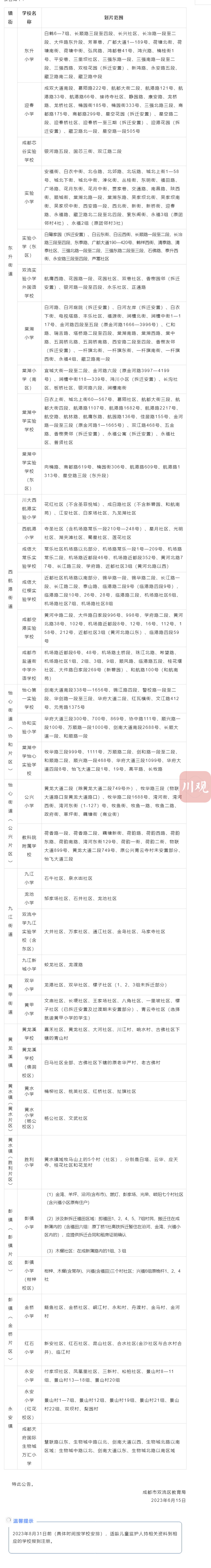 近日,成都部分区(市)县小学一年级新生入学划片范围公布,一起来看↓