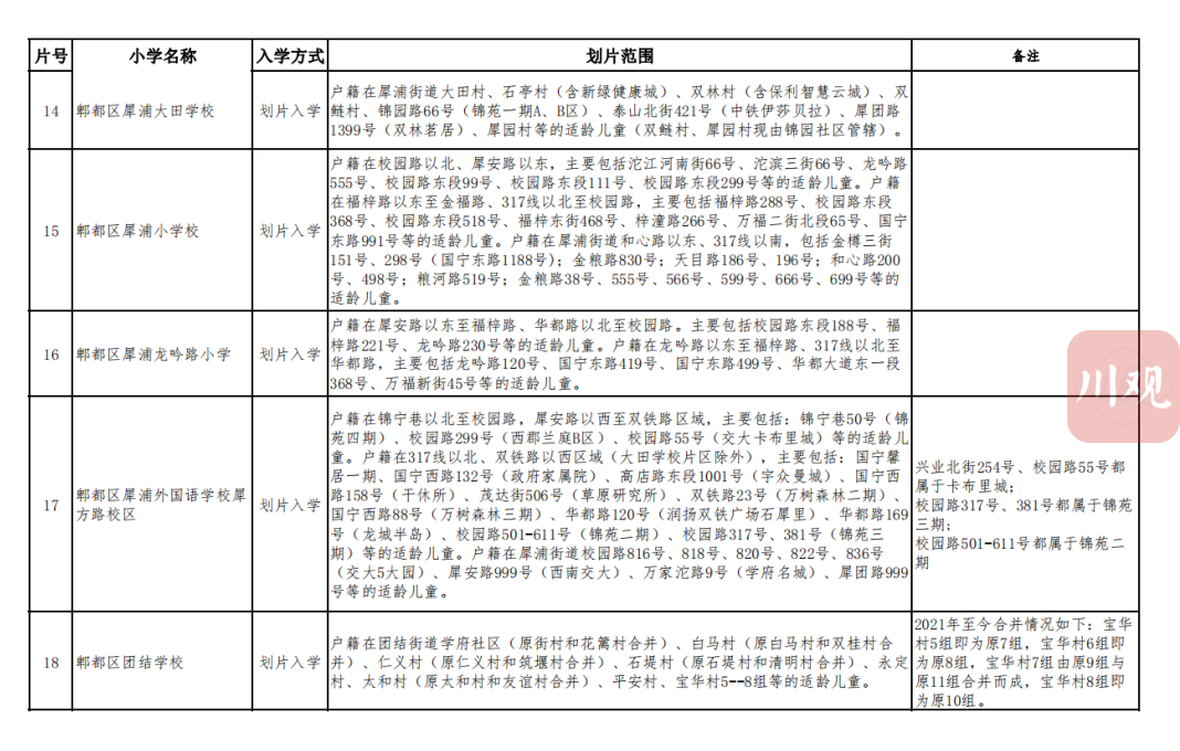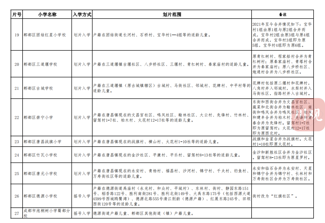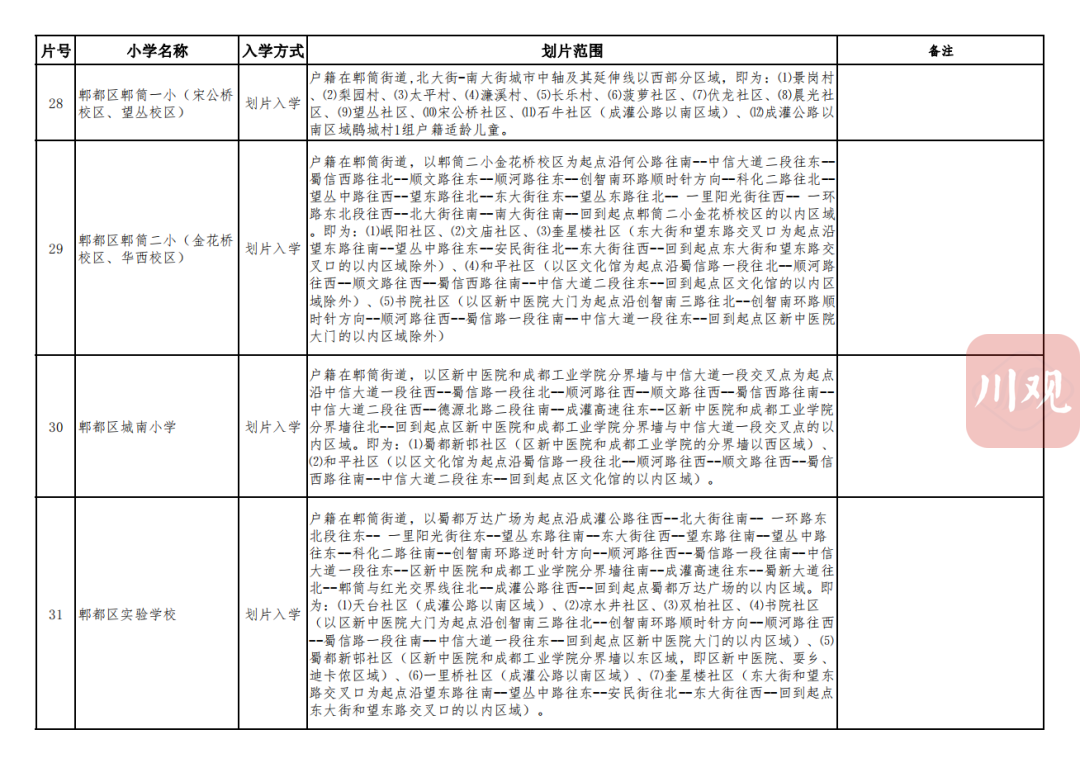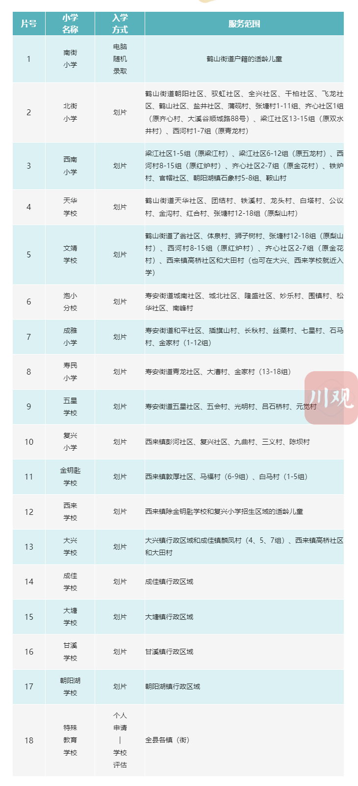 近日,成都部分区(市)县小学一年级新生入学划片范围公布,一起来看↓