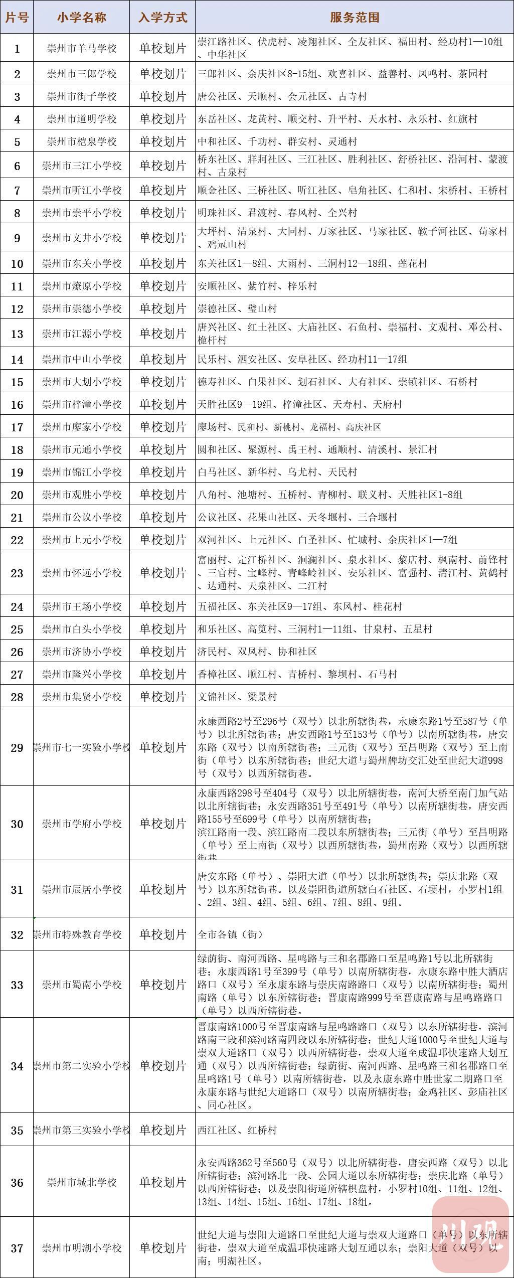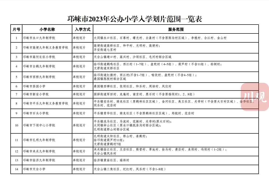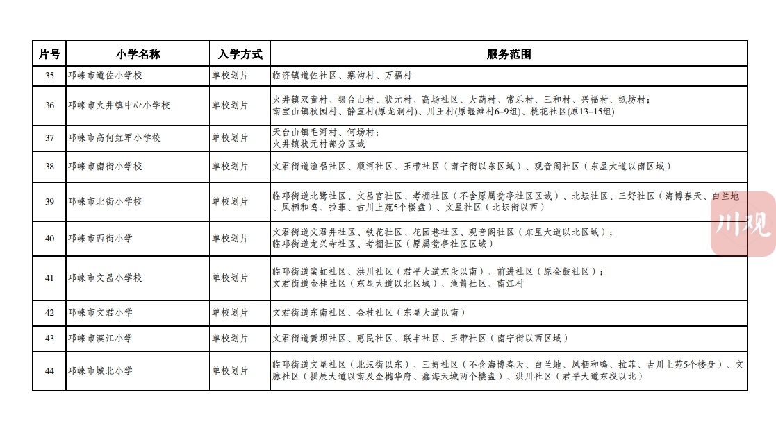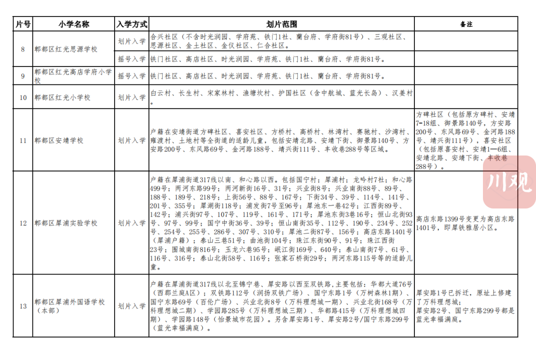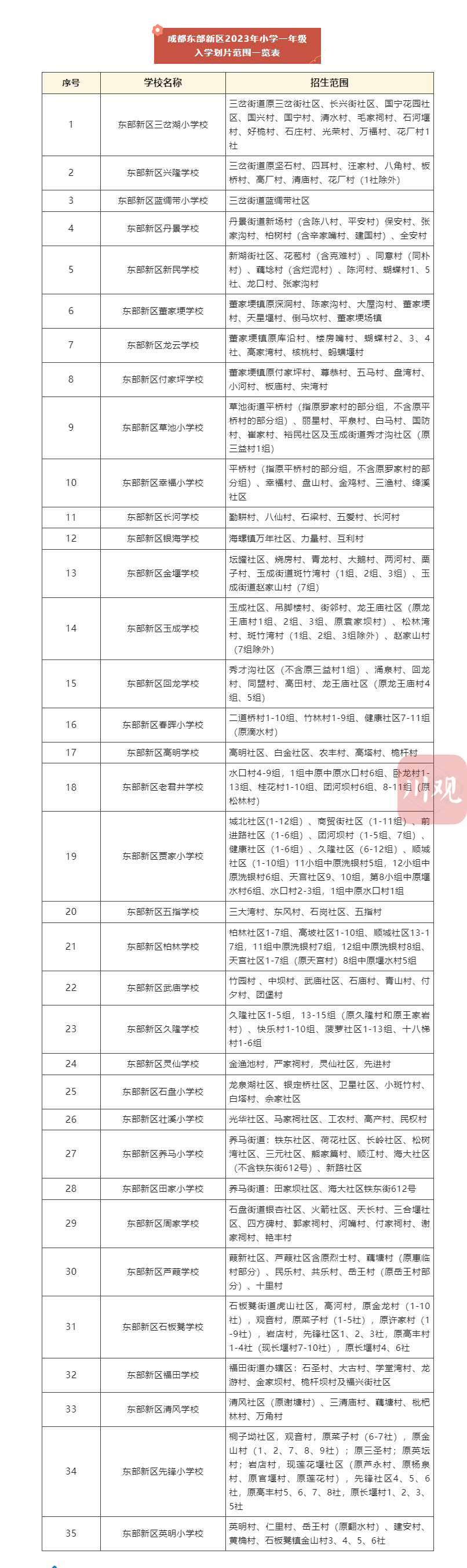 近日,成都部分区(市)县小学一年级新生入学划片范围公布,一起来看↓