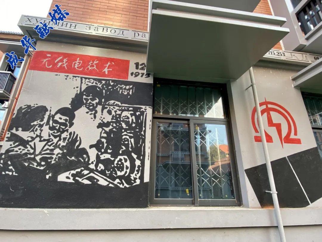 八二小区在打造过程中充分利用小区内的苏式建筑,在“成华红”建筑肌理的基础上融入现代技术、环保材料和各类艺术表现手法,充分展现了成华工业文明。瞧,这建筑外立面的工业元素涂鸦就勾起了老一辈人的回忆,讲述着曾经这片土地上的故事~