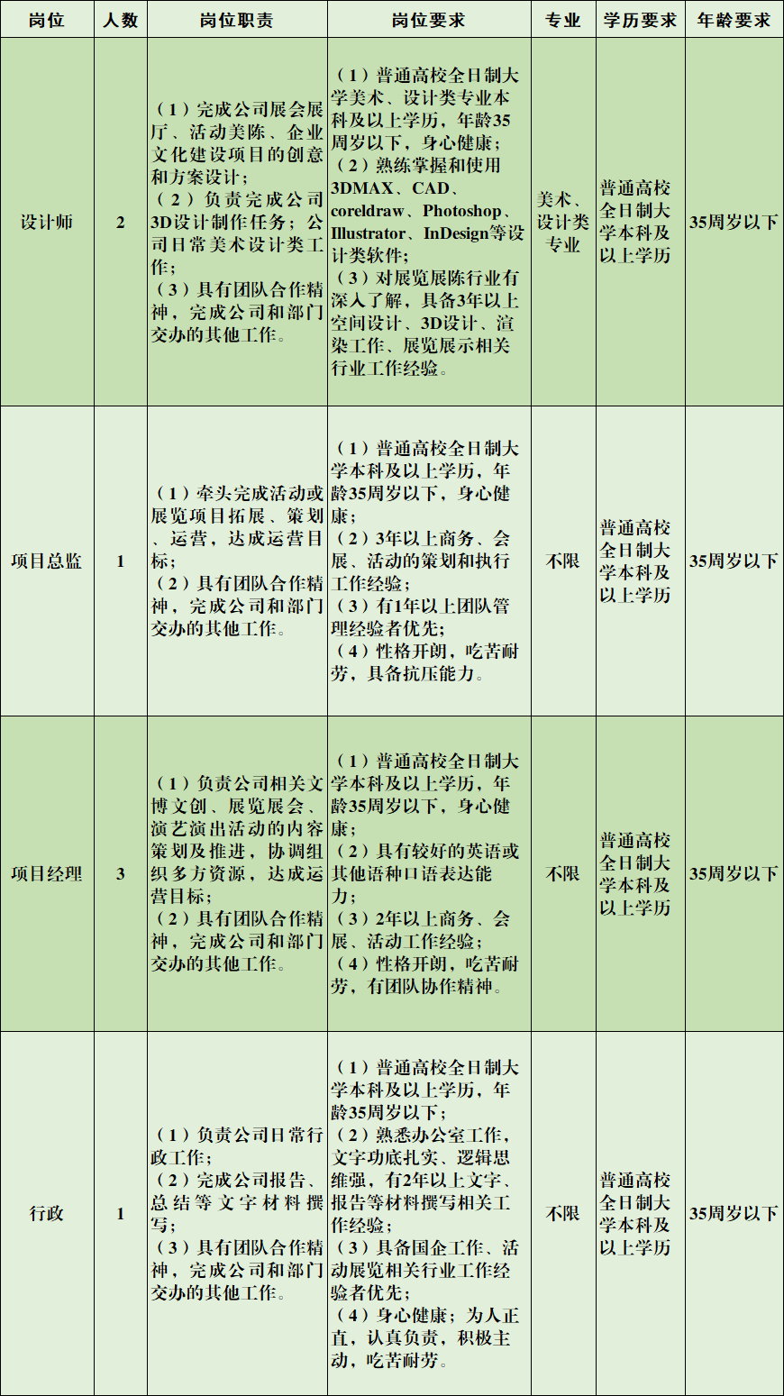 现因事业发展,特面向社会公开招聘7人,具体如下: