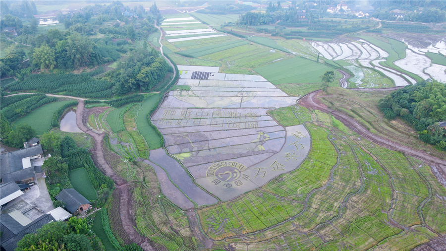 6月15日,乐山市沙湾区踏水镇柏林村的稻田里,多种彩稻交错生长,一幅“种好中国粮·端稳中国碗”的主题稻田艺术正在一步步生成。“我就是一个农民,种了一辈子水稻,想不到大家还给我整了一个‘稻田艺术师’的称号。”村民朱全福笑着说。