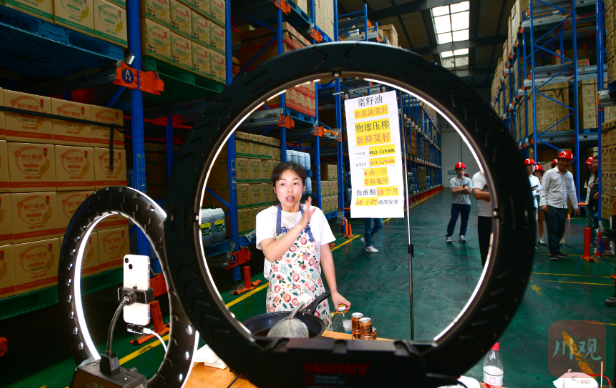 成都市新兴粮油有限公司内的直播带货区域。 华小峰 摄