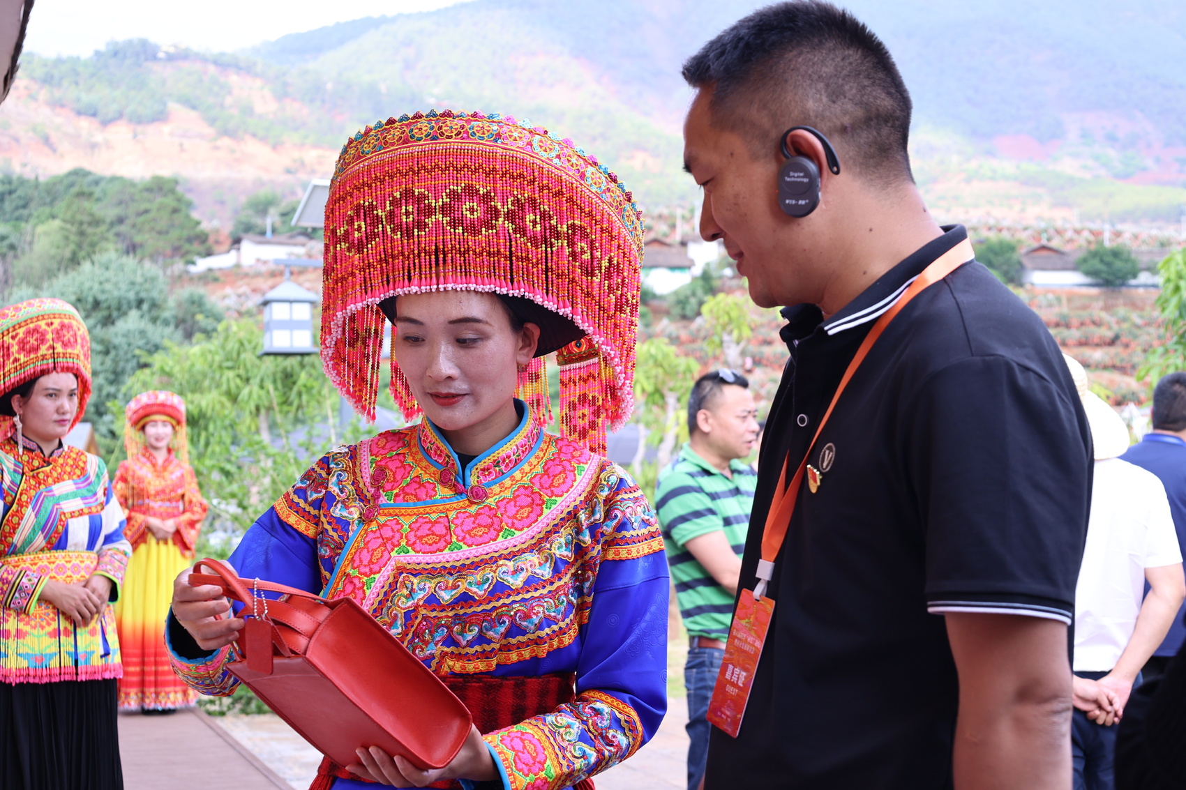 参会嘉宾观摩新山傈僳族乡非遗文创产品。