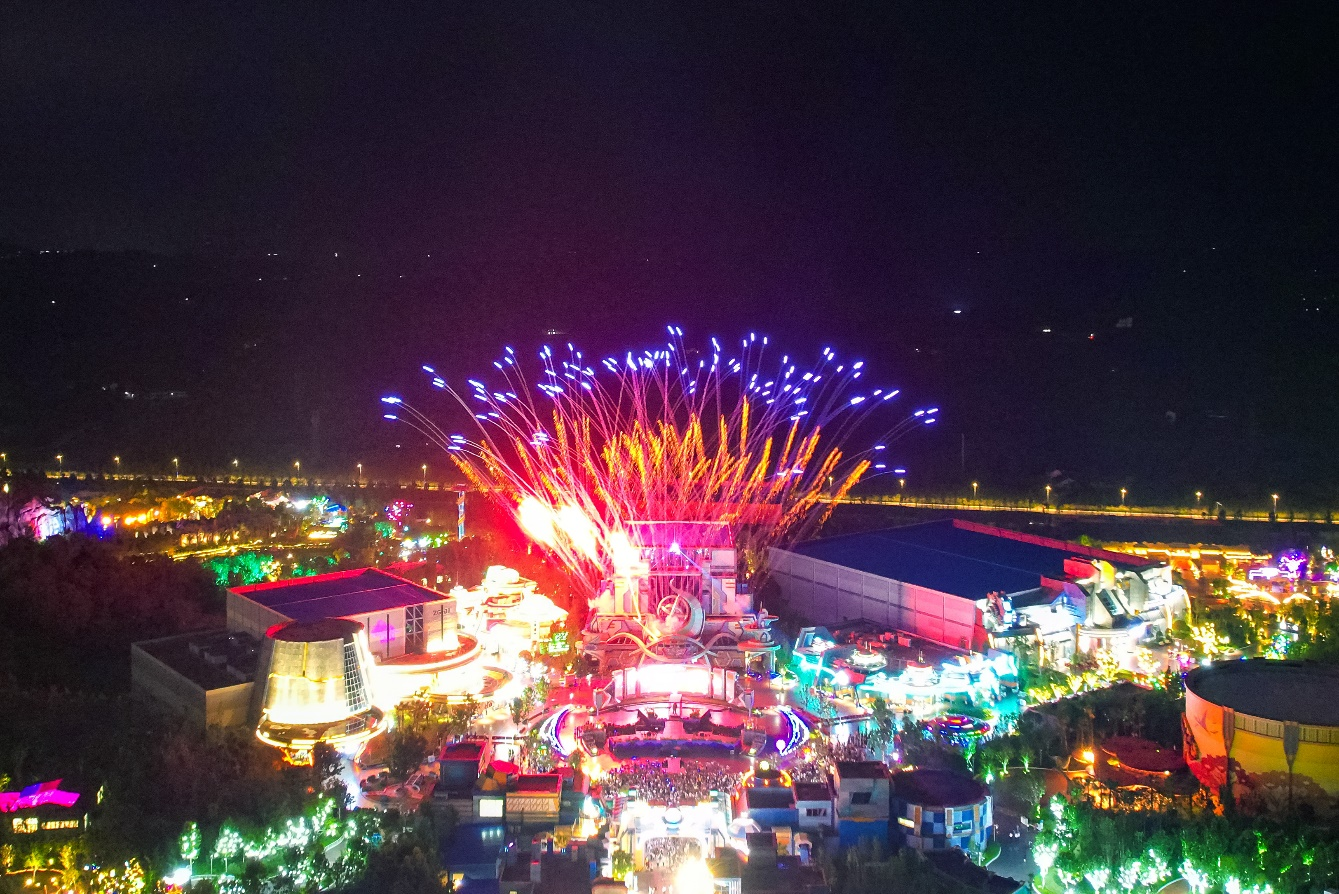 夜幕降临,精彩加倍。“寻龙奇遇记”在中央基地舞台开演,带领广大游客走进恐龙与人类、史前与未来的故事情景。随后,万众期待的“ONE岁日记簿”闪耀星空,无人机和烟花大秀展现自贡方特的成长故事,记录这美好夜晚。