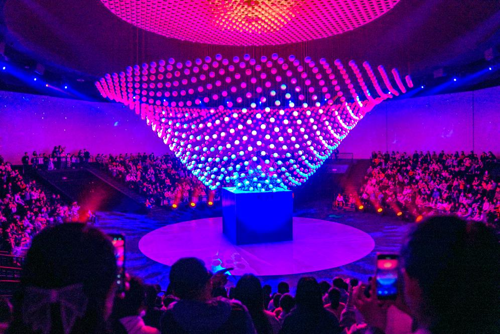 刚一入园区,充满仪式感的巨型蛋糕美陈以及“周年欢乐颂”庆生舞蹈,就让母子二人感受到满满的生日氛围。“很漂亮很惊喜,也很有喜庆热闹的气息。”