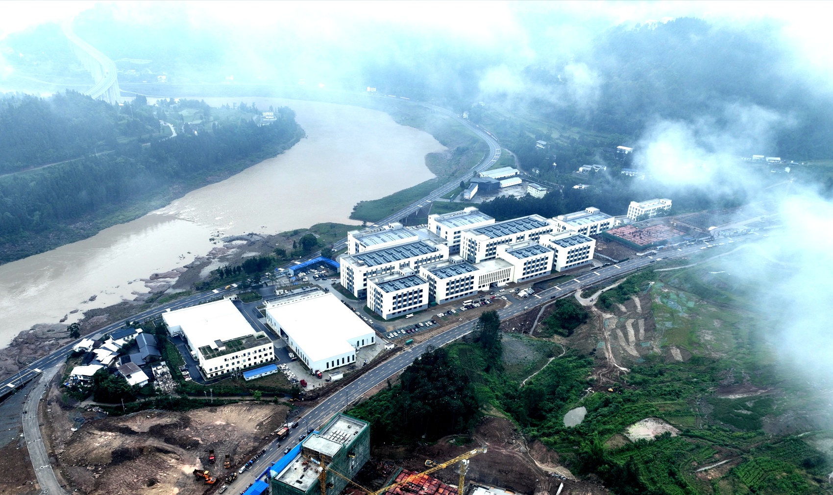6月8日,南江县东榆工业园区内,南深科技园项目正加紧建设。这个省级重点项目于2021年从广东深圳引进,总投资25亿元,占地面积约400亩,预计今年12月底全面建成投产。该项目施工负责人吴海洋介绍,目前项目一期工程基本完成,已入驻电子厂和内衣制造厂2家,还有2家企业正在进行厂房装修。