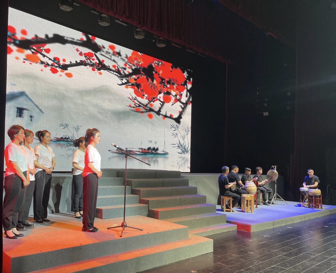 今年5月,国家艺术基金艺术人才培养资助项目“川剧帮腔表演人才培养”的汇报演出在成都理工大学举行,这是川剧界数十年来罕见地集中专门培养川剧帮腔表演人才。课程设置有“戏曲的发展脉络和声腔分布”“传统戏曲与新创剧目的帮腔艺术”“川剧帮腔与锣鼓的结合”“从生态思维谈身心协调与声音运用”等,杨茜是其中的学员之一。