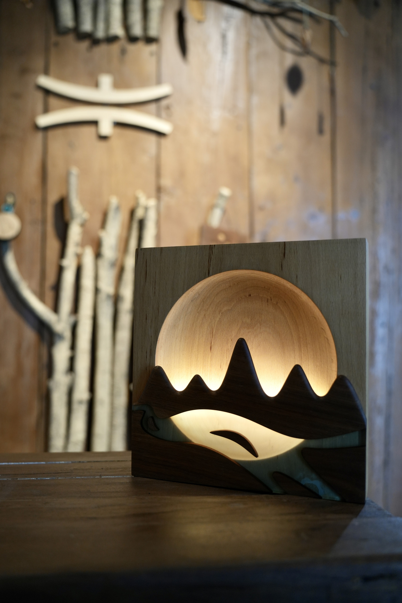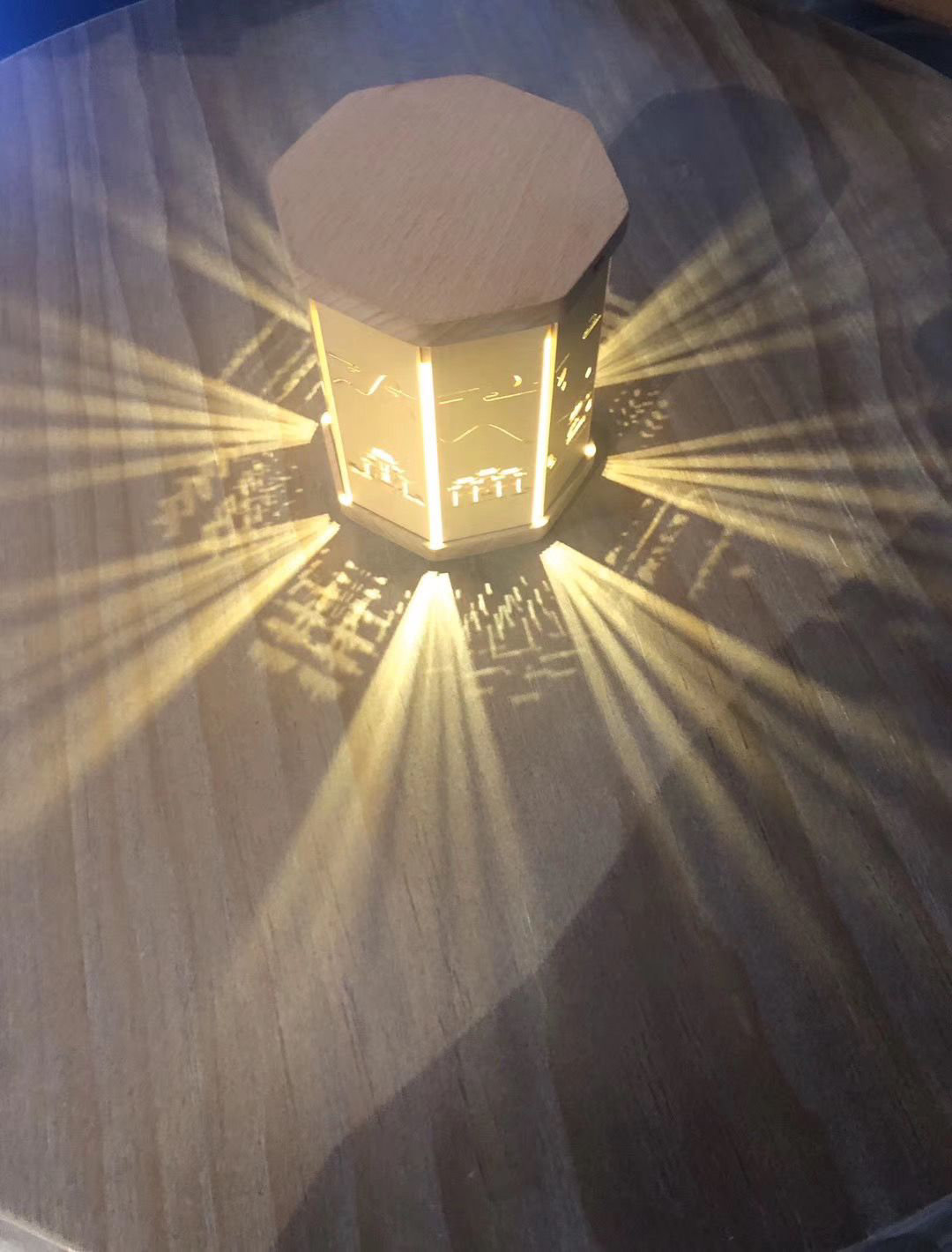 两次深圳之行,李亚梅都携带了原创木艺“都江十景”小夜灯。这款文创产品整体外观呈八棱柱造型,每一面都雕刻有都江堰的著名景点的特色建筑,如南桥、安澜索桥、玉垒山、奎光塔等。在黑暗处亮灯后,都江堰十大景观通过光线透射出倒影,分布在灯的周围,展现出都江堰的另一种山水之美。