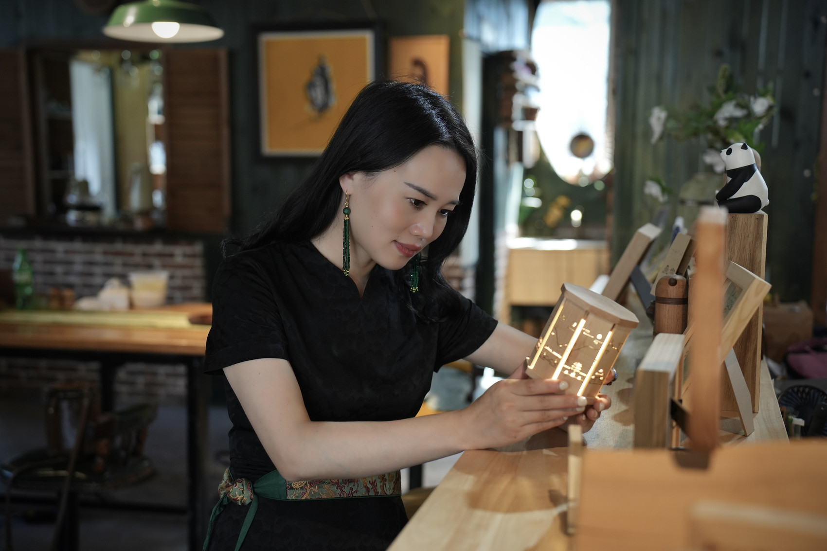 李亚梅出生在木匠世家,自幼深受父辈影响,多年潜心钻研木艺文创,于2017年创办木子尹工坊。一榫一卯,一刀一刻,一件件精美的木艺品在李亚梅手中焕发生机。6年来,李亚梅一直致力于打造成都天府文化、都江堰“三遗”文化等相关的木艺文创产品。