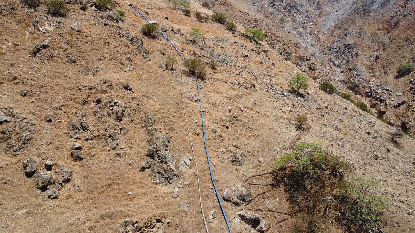 引水管道翻越1200米长的陡坡段。韩嘉伟 摄