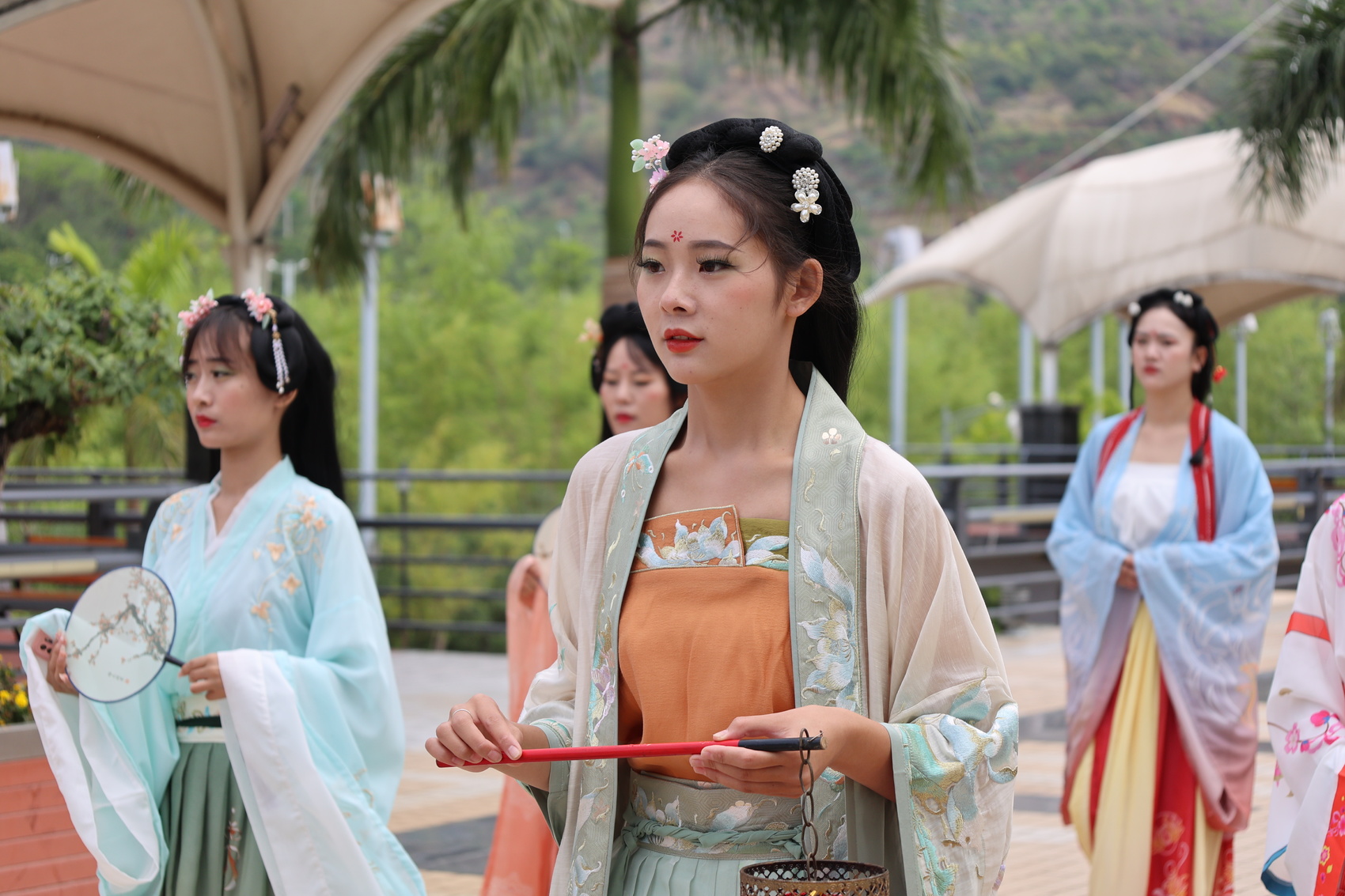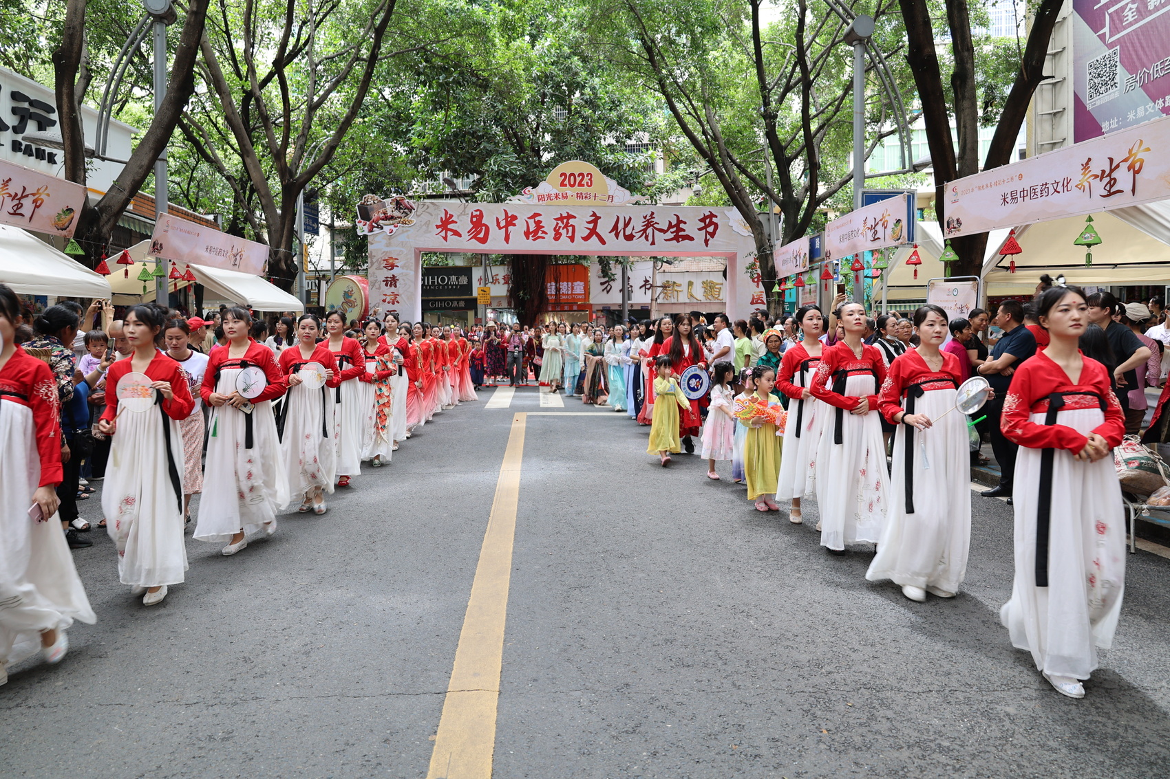 “国泰民安,风调雨顺,海晏河清,端午安康……”当天,米易中医药文化养生节启动仪式后,身着传统服饰的工作人员宣读开街唱词,百名志愿者身着华丽的传统汉服,手持团扇或传统油伞,佩戴小香包,在鼓乐声中巡游,成为米易县城一道靓丽的风景。