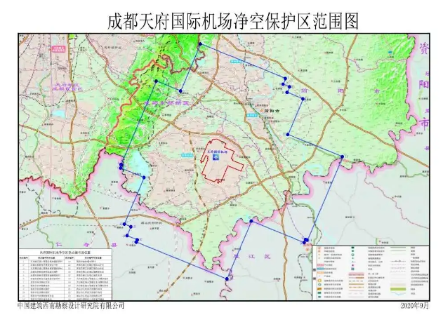 成都东部新区和简阳市大部分区域为成都天府国际机场净空保护重点保护区域。